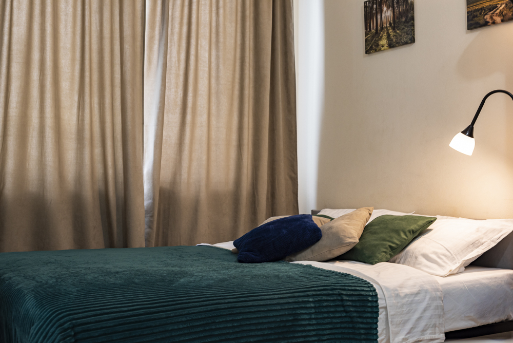 - Большая двухспальная кровать с ортопедическим матрасом.