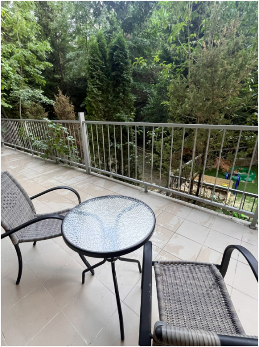 Имеется терраса с видом на сад, горы, оборудованная комплектом мебели.