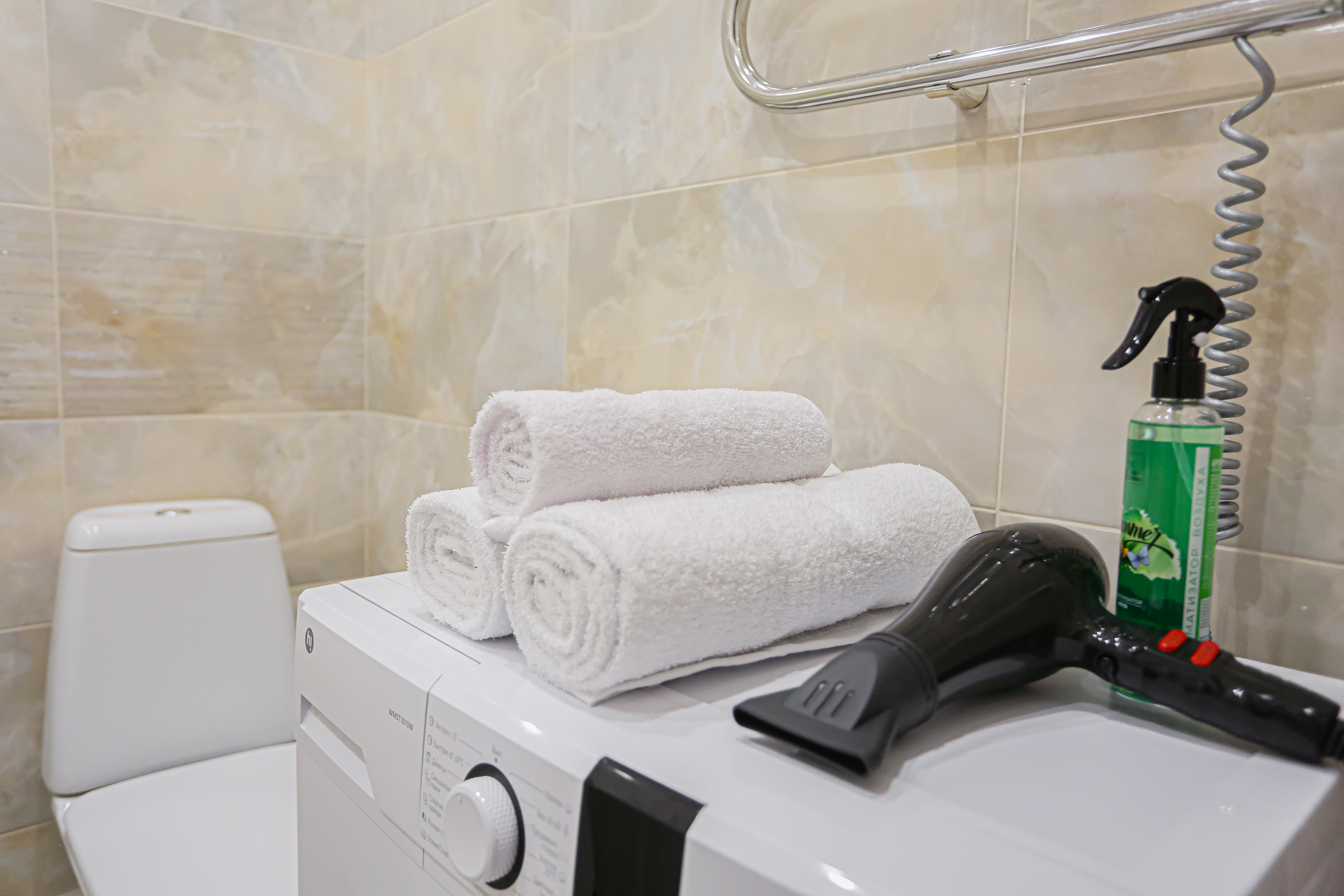 - всё нужное для проживания: кофе, чай, посуда, утюг, стиральная машина, сушилка, гладильная доска;