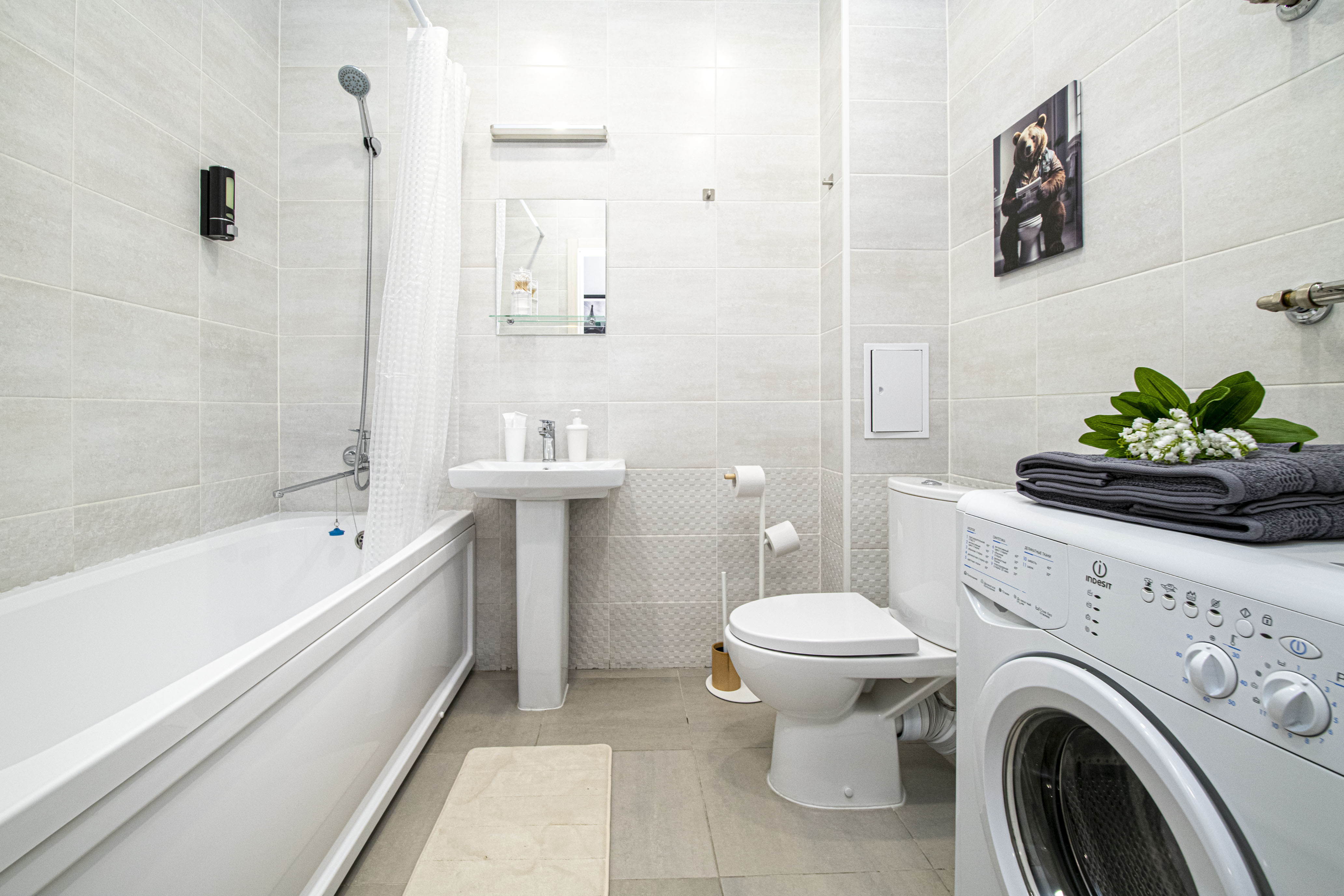 - всё нужное для проживания: кофе, чай, посуда, утюг, стиральная машина, сушилка, гладильная доска;