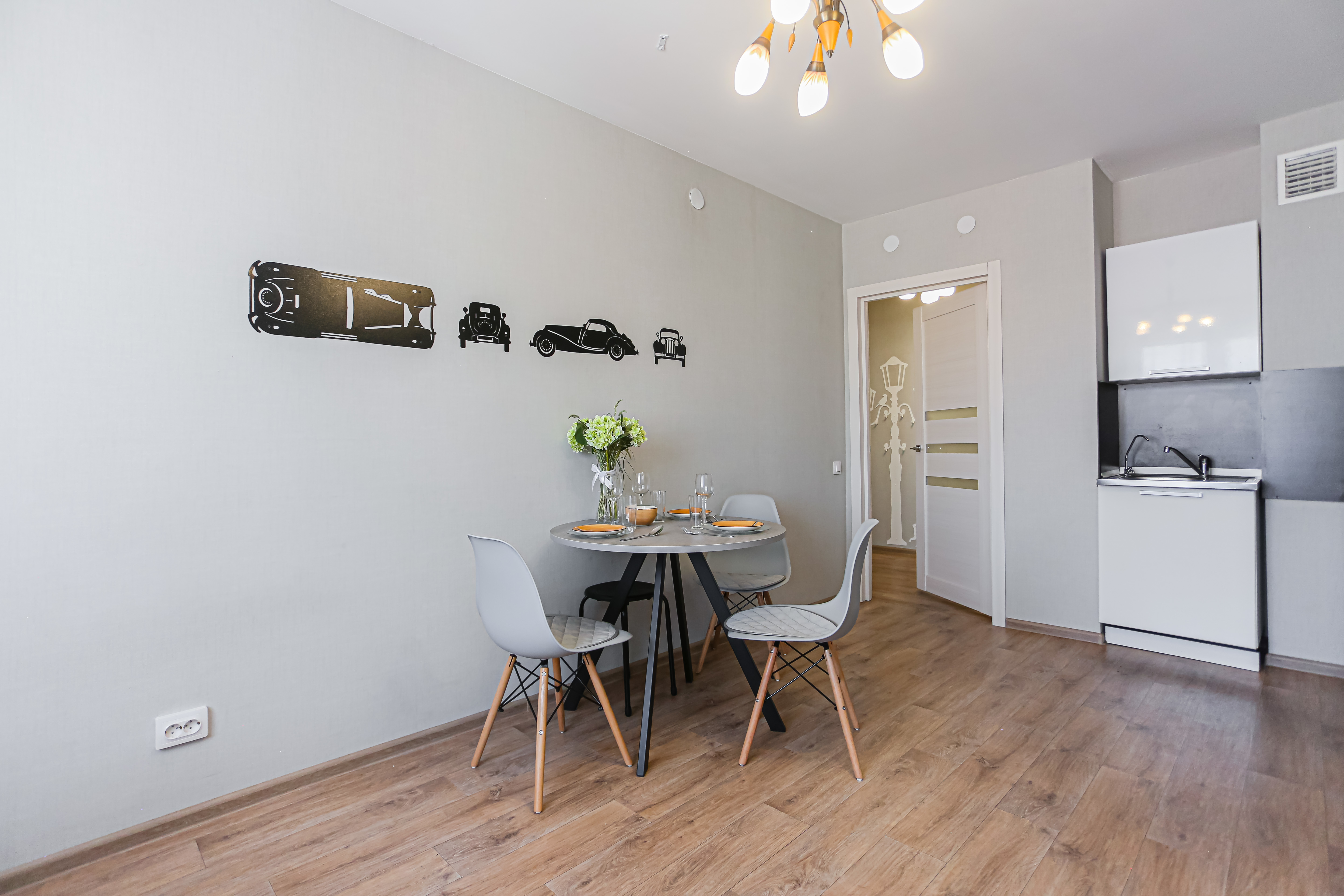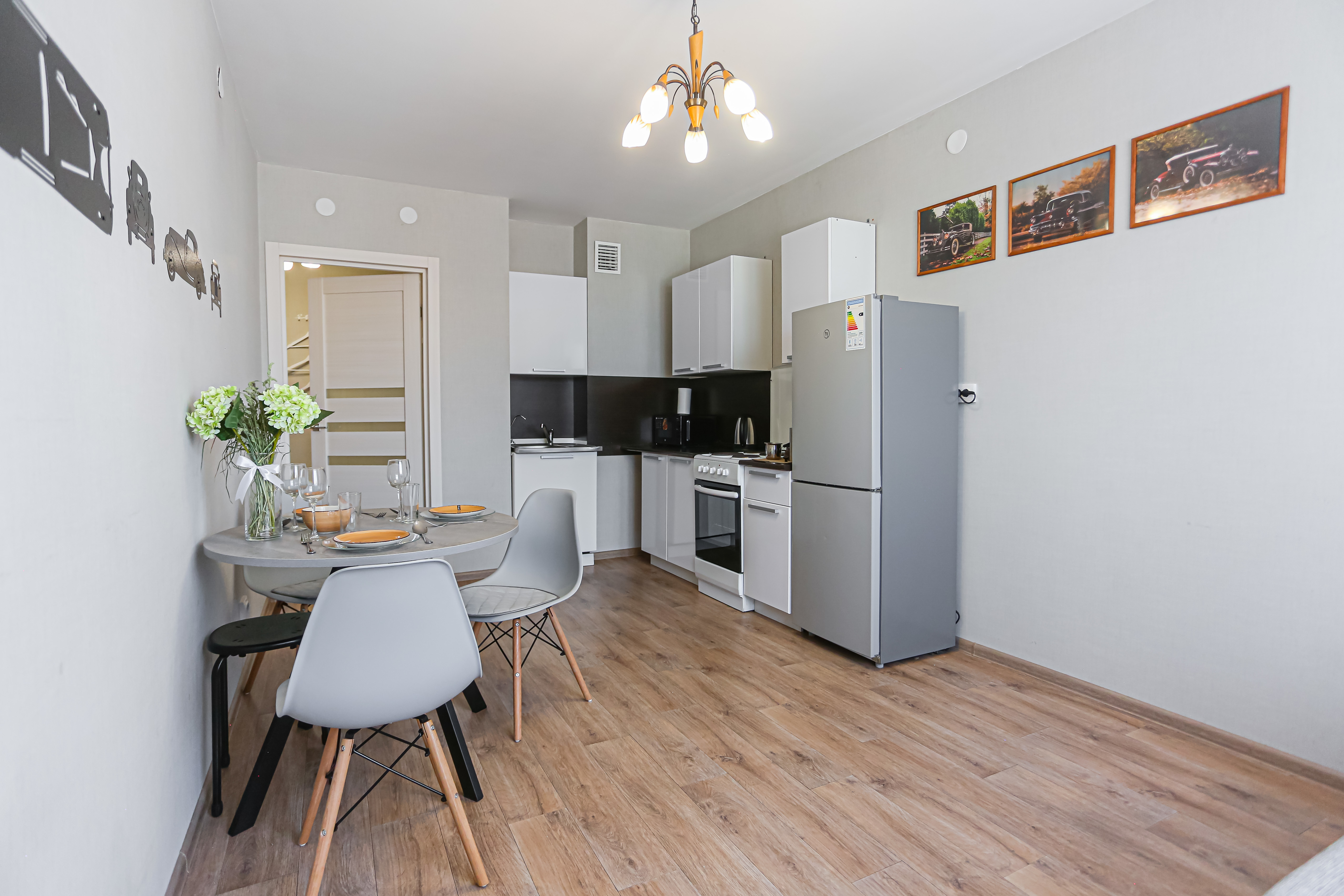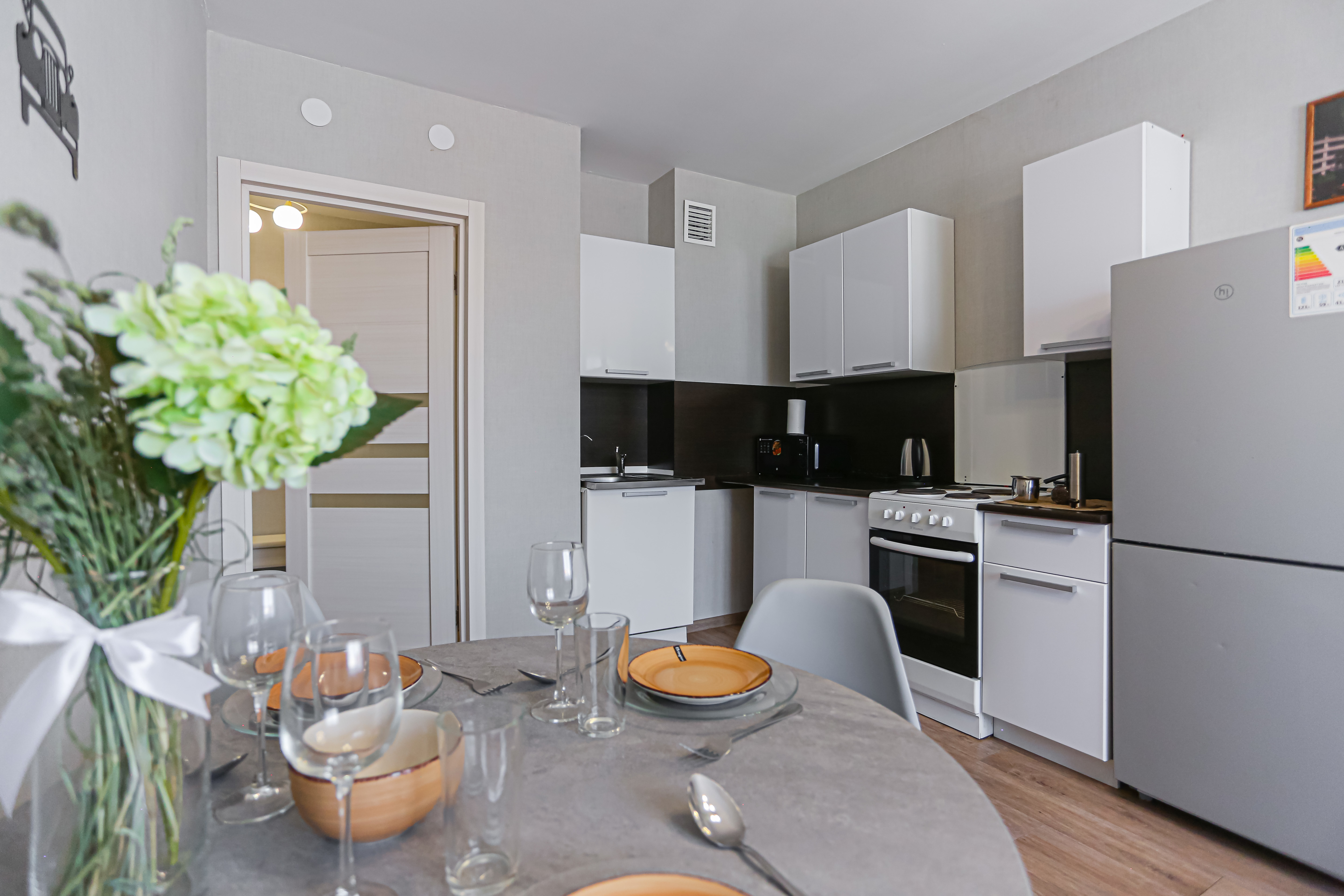 - Всё нужное для проживания: кофе, чай, посуда, утюг, стиральная машина, сушилка, гладильная доска;