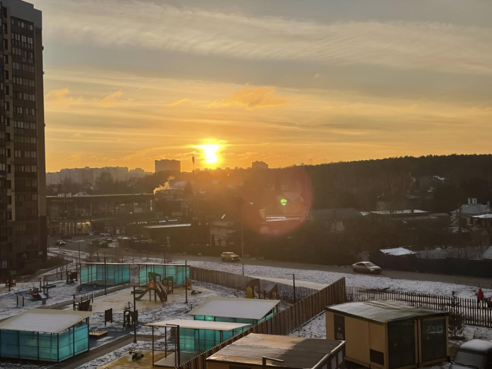 Студия - солнечная и уютная. Окна - во двор, на частный сектор и на закат солнца над опушкой леса.