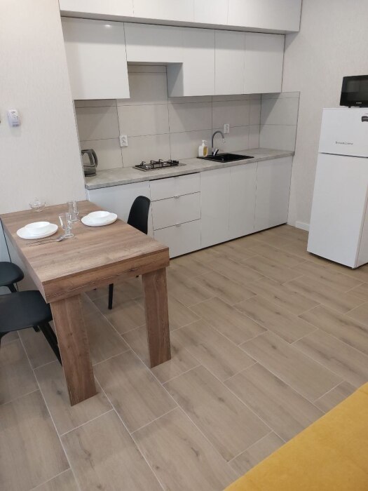 -️ комплект посуды, газовая плита, микроволновая печь, холодильник, чайник;