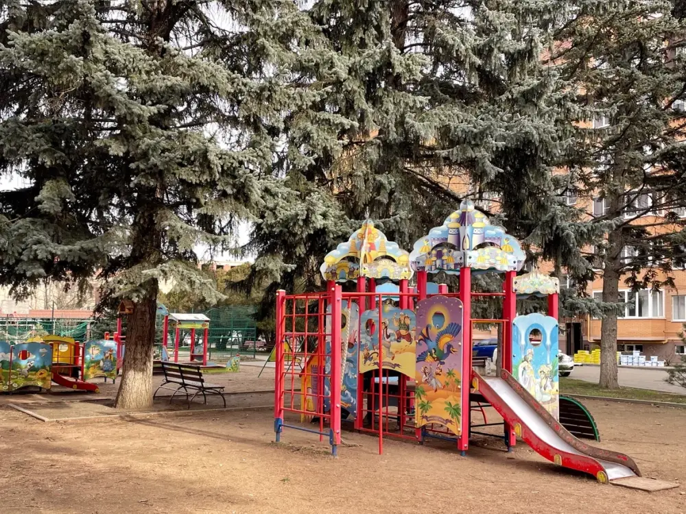 Квартира находится в многоквартирном доме с закрытой территорией. Тихий уютный двор с хорошей детской площадкой, зоной для прогулок.
