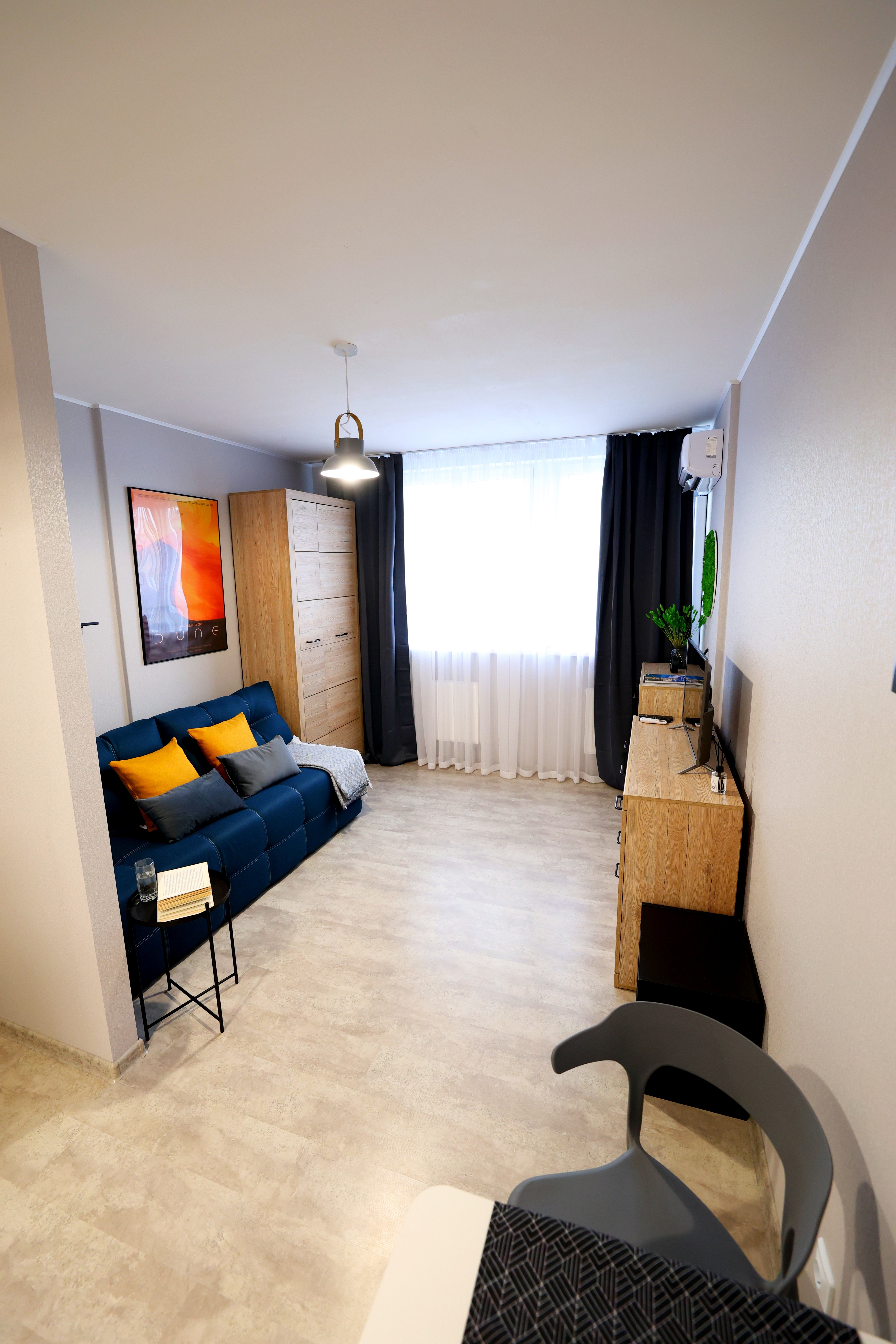Условия проживания: кондиционер, высокоскоростной интернет до 200 Мбит/сек, современный телевизор 32» с выходом в интернет, современный дизайн интерьера.