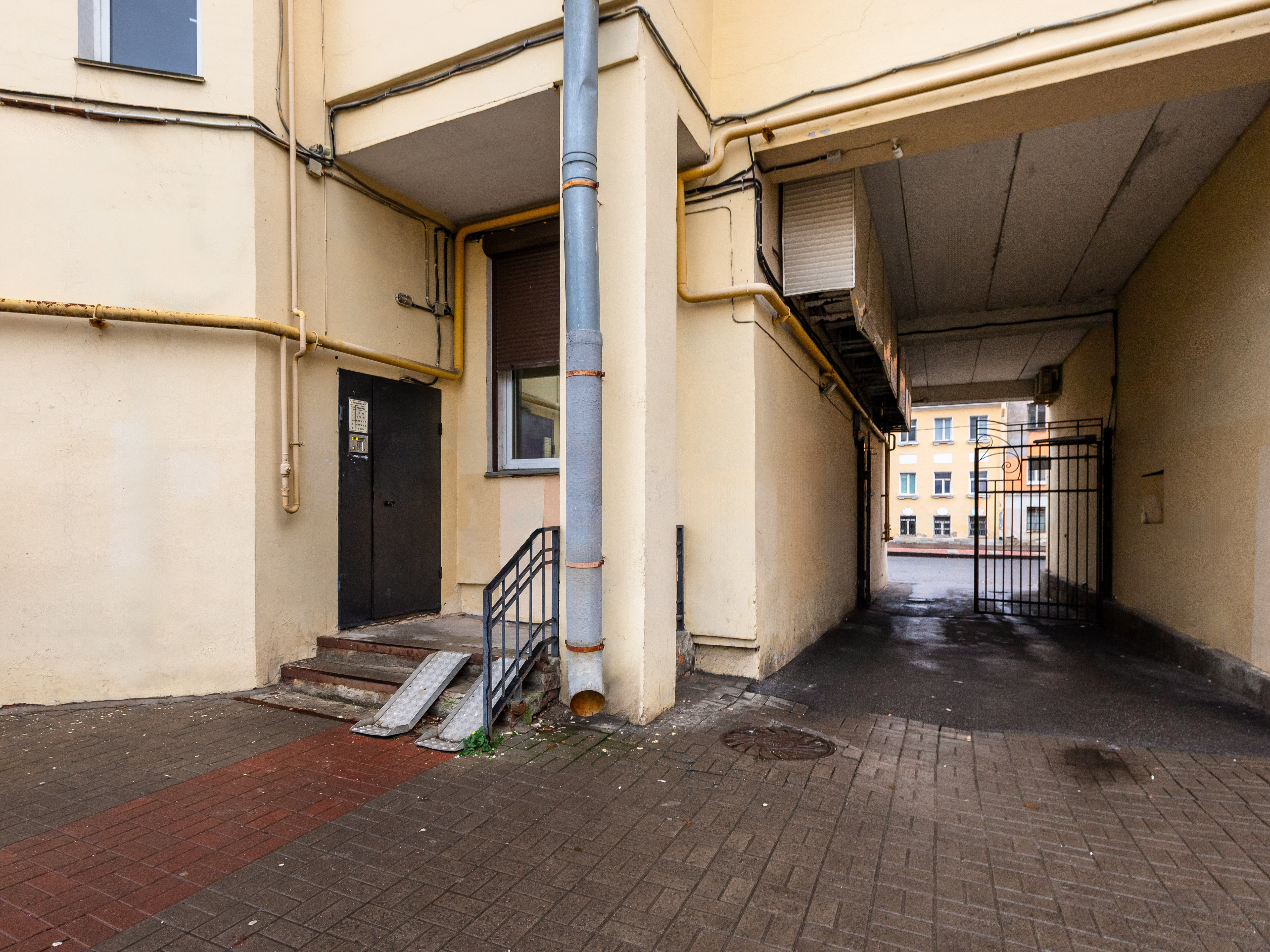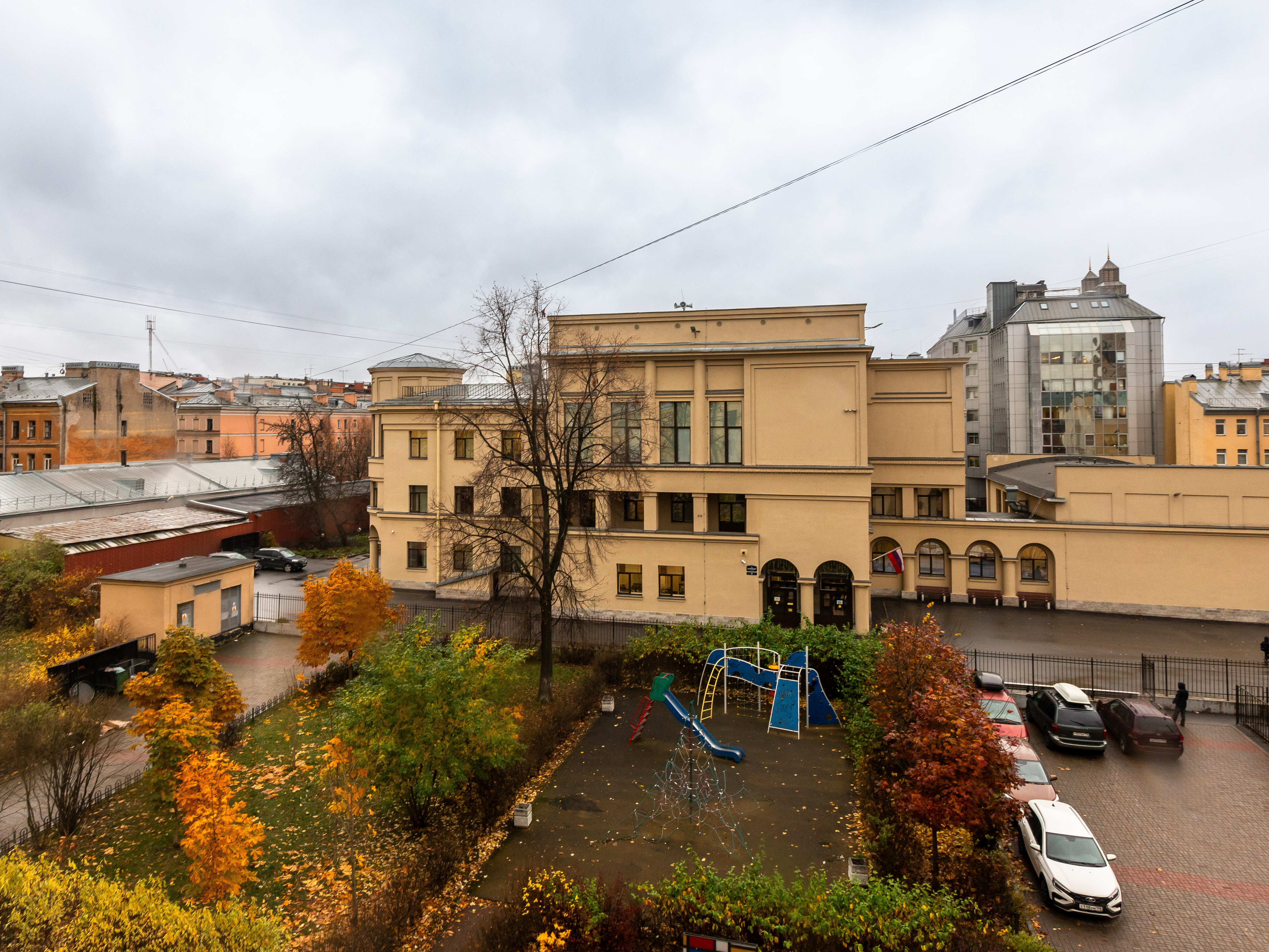 Cпoкойный двор с детской площадкой.