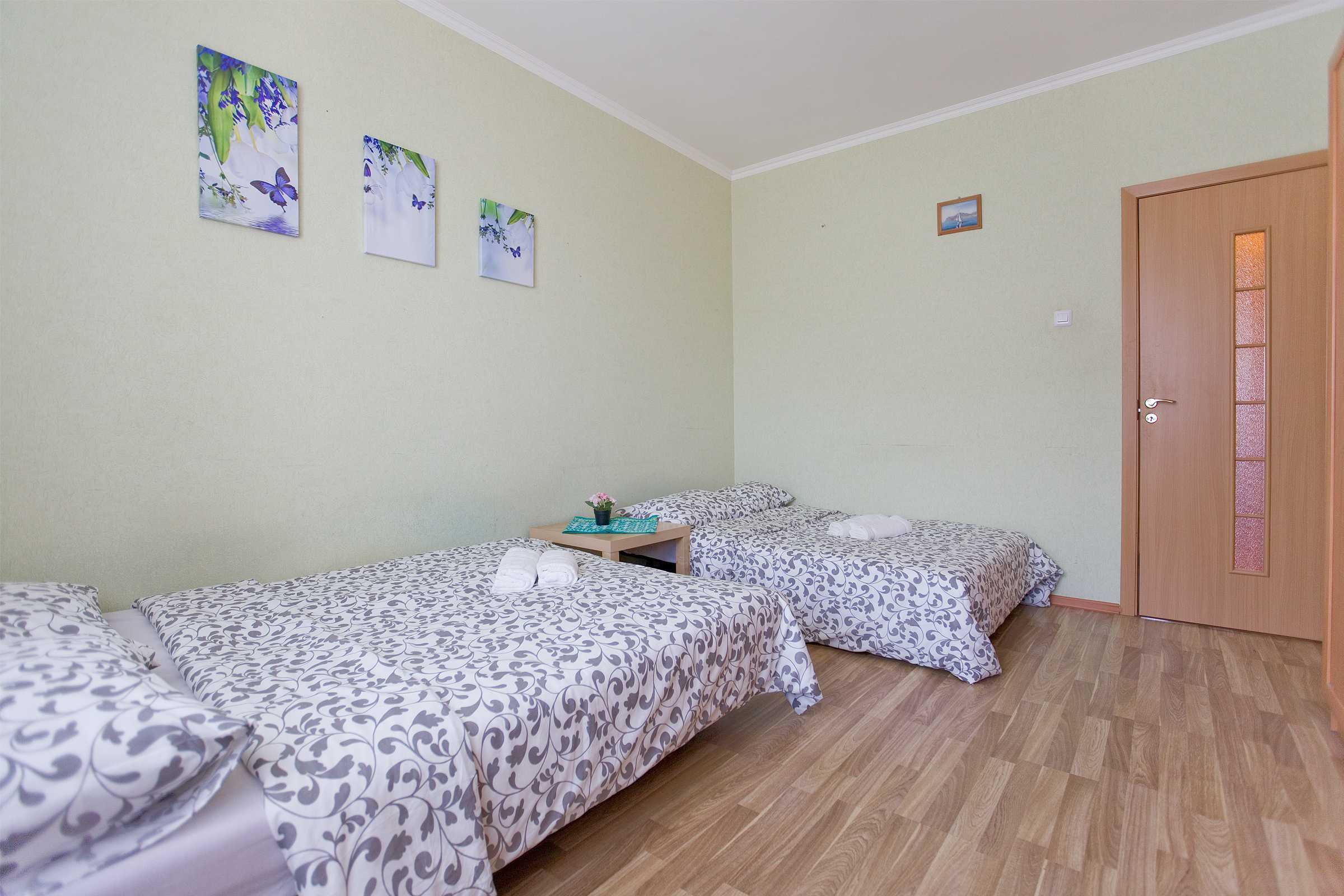 Уютная квартира с двумя изолированными спальнями и вместительной кухней-гостиной для большой семьи, компании, группы, деловых путешественников, оснащена всей необходимой мебелью, техникой, посудой.