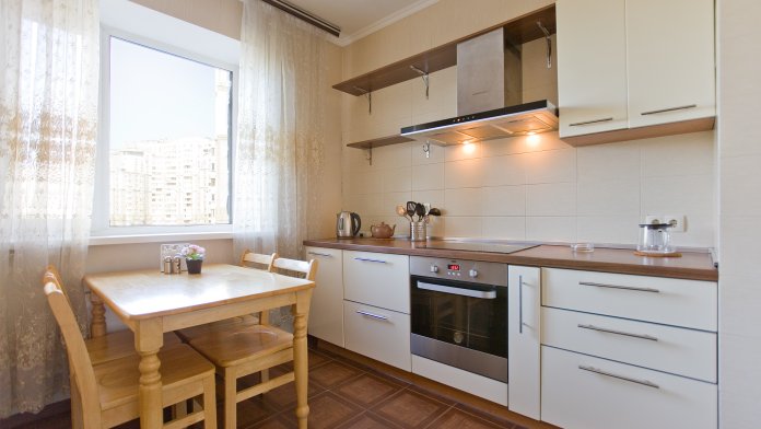 Кухня оснащена двухкамерным холодильником, посудомоечной машиной, электрочайником, всей необходимой посудой как для приготовления ,так и для приёма пищи.