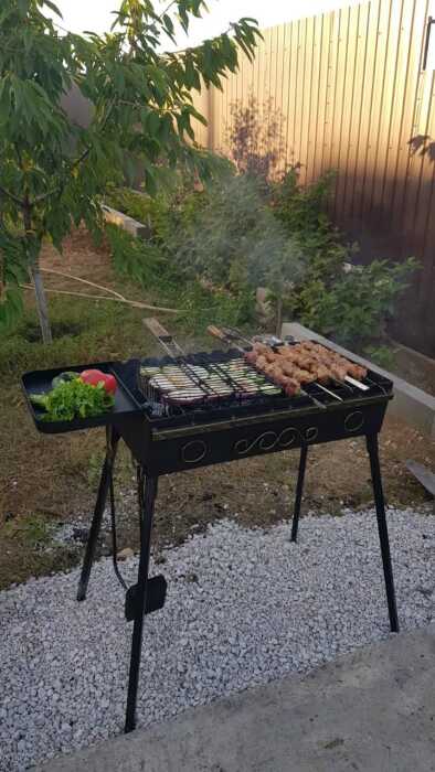 Во дворе мангальная зона, огороженный двор, смотровая крыша со столиками.