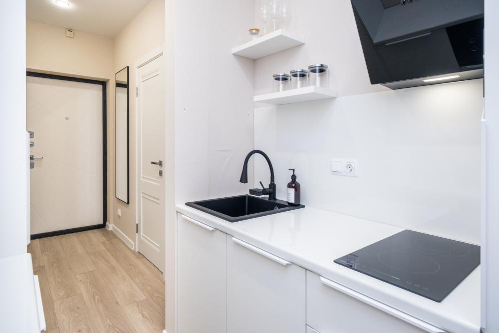 Предлагаем Вам уютную студию площадью 28 кв.м на 6 этаже 12-этажного дома. Здесь есть все необходимое для комфортного проживания до 3 гостей. Наслаждайтесь свежим постельным бельем, мягкими полотенцами и всеми необходимыми средствами гигиены.