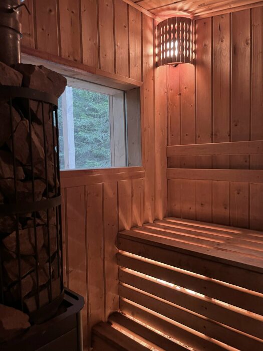 Гости могут заказать баню на дровах, взять в бесплатную аренду сап-борды, резиновую лодку и снасти, а также активные и настольные игры. Насладиться тишиной и велосипедными прогулками в хвойном лесу. Дети могут весело провести время на детской площадке.