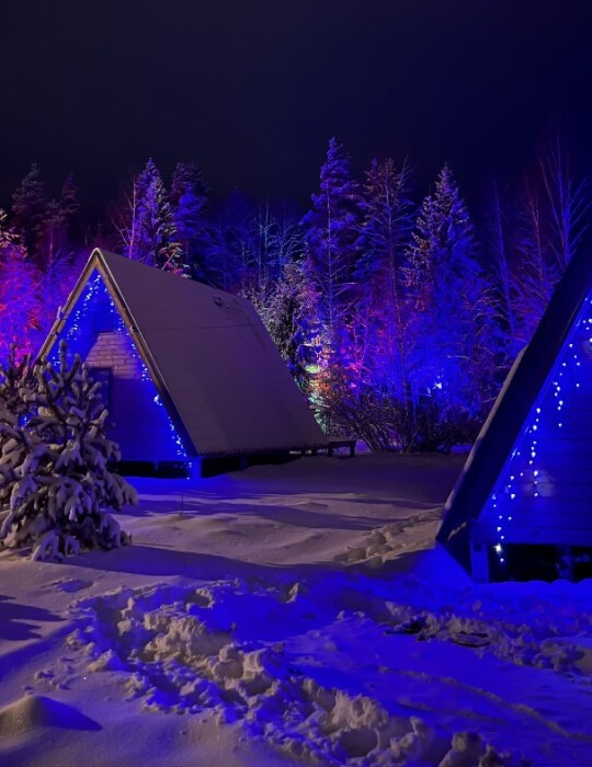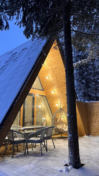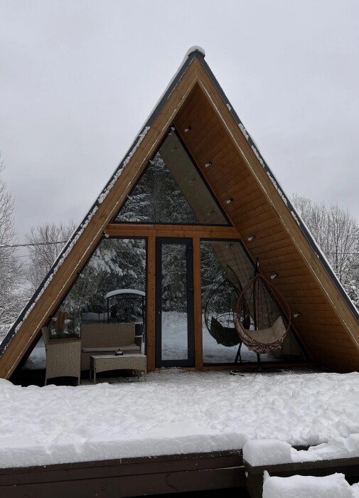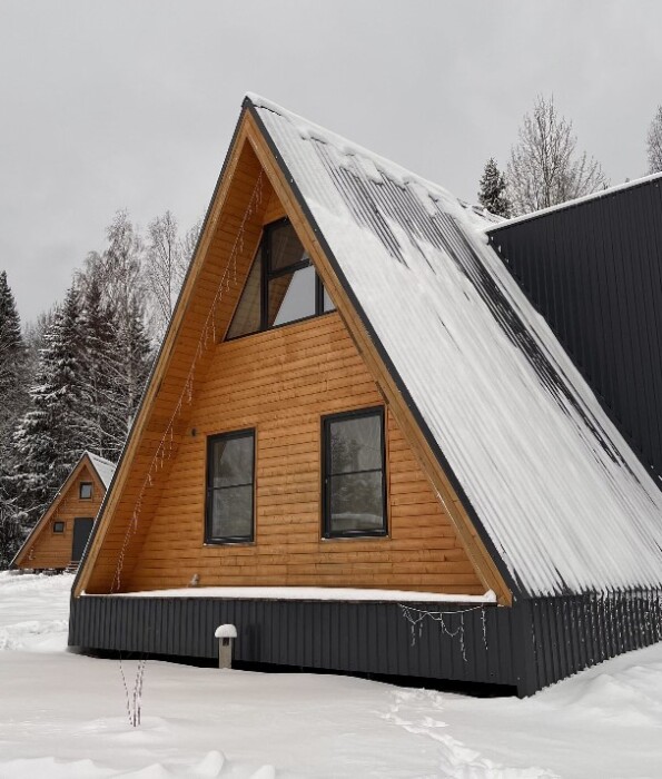 - комфортабельные треугольные дома-афреймы для размещения 2-6 гостей;