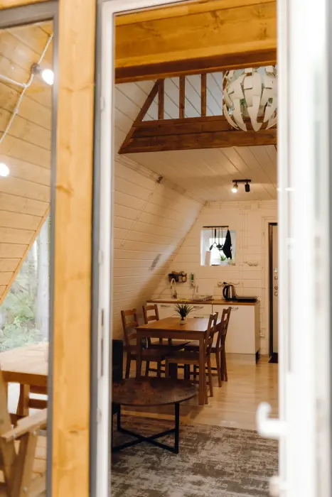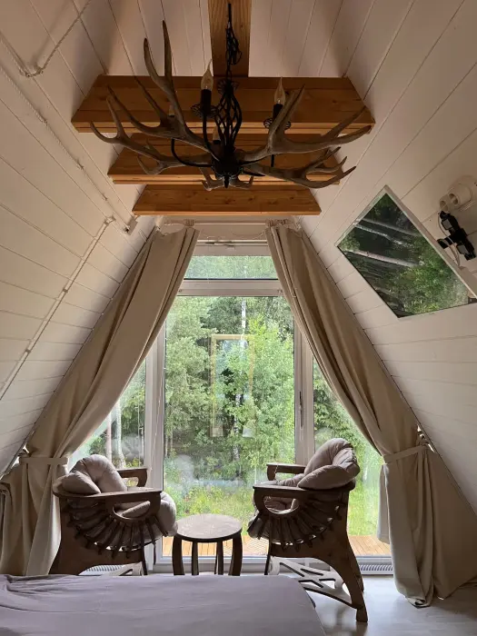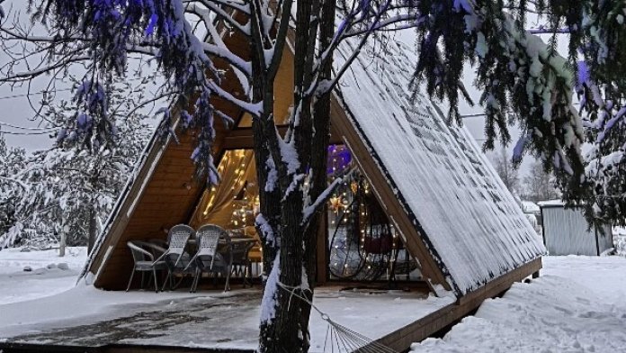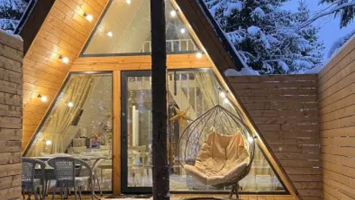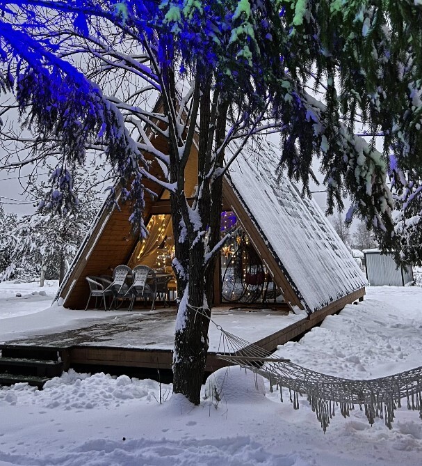 - уютные треугольные дома-афреймы для размещения 2-4 гостей;