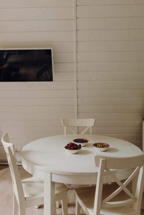 Комплектация дома включает: 4 уютные спальни с двуспальными кроватями, хлопковое постельное белье; гостиная с зоной отдыха и большим обеденным столом; просторный холл; 2 санузла с душем и ванной, горячая и холодная вода, полотенца, фен, гель для душа