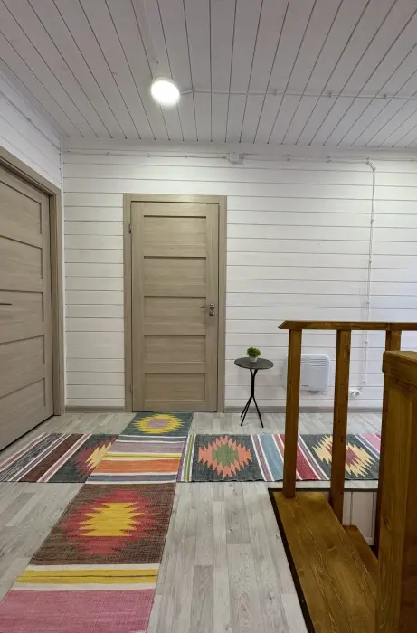 Комплектация дома включает: двуспальное место под крышей; отдельную спальню на 1 этаже; двуспальный диван внизу; постельное бельё, полотенца; санузел: душ, туалет, горячая и холодная вода, фен; оборудованная кухня: посуда, плита, холодильник, чайник, микроволновка; конвекторное отопление; Wi-Fi, телевизор; терраса с купелью и зоной отдыха; мангал (решетки предоставляем).