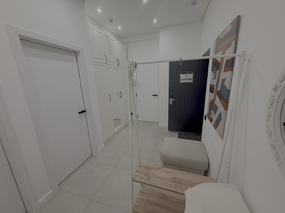 Каждый уголок квартиры оснащён большими экранами Smart TV, позволяющими удобно просматривать любимые фильмы и сериалы прямо из постели или сидя на кухне. Современный дизайн интерьера дополняют стильный санузел с удобной ванной и душем, стиральной машиной, качественной сантехникой и красивым зеркалом.