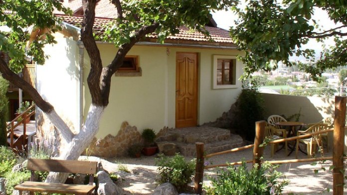 Номер с удобствами, имеющий отдельный вход и небольшую прихожую. Рядом с крыльцом имеется столик. Уединенность и уют Греческого домика делают его особенно привлекательным для отдыха супружеских пар.