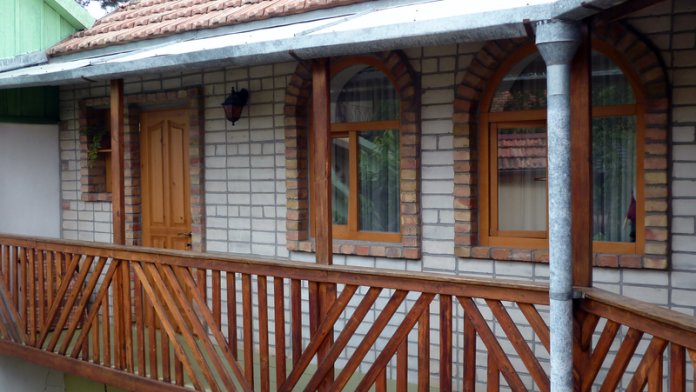 Альпийский домик номер имеющий отдельный вход с крыши верхнего гостевого дома. Собственная терраса со столиком. Интерьер оформлен в стиле шале, со сводчатым потолком и мебелью из натурального дерева. Обстановку домика составляют стенной шкаф, комод, тумбочка, кроватный столик, две односпальные кровати, которые можно сдвинуть вместе.