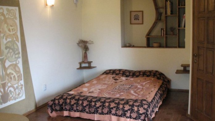 Русская комната –2-3-х местный номер с удобствами, расположенный на 2-м этаже нижнего гостевого дома. Это самый светлый из номеров Солнечного замка, а деревянная мебель в светлых тонах и элементы русского декора делают его по-домашнему уютным.