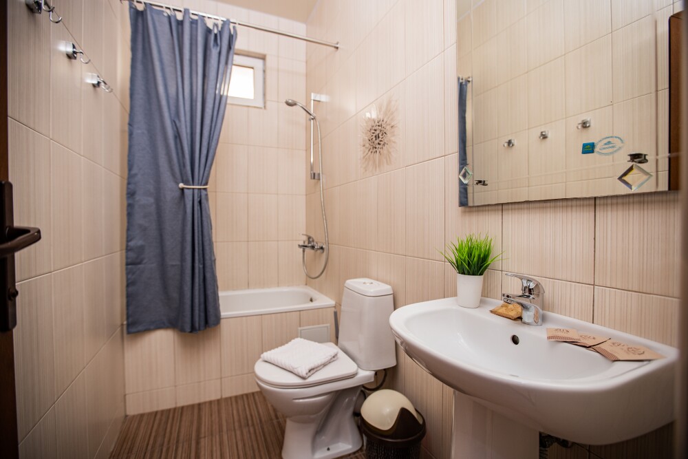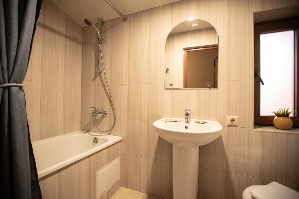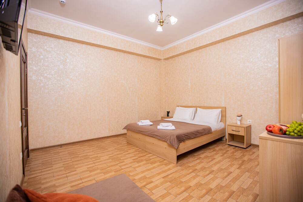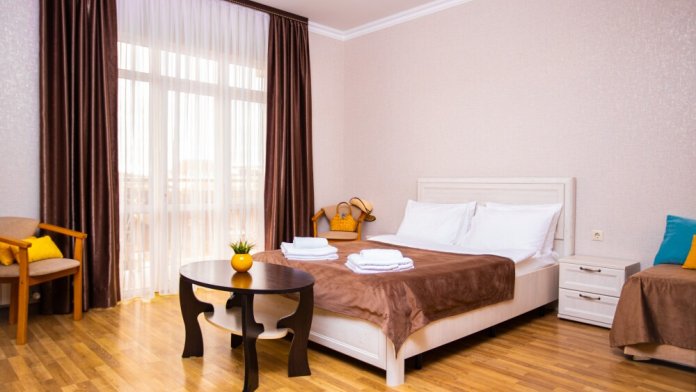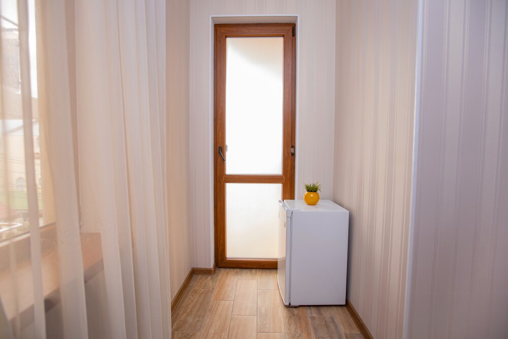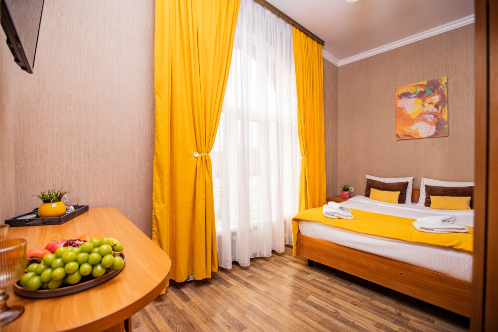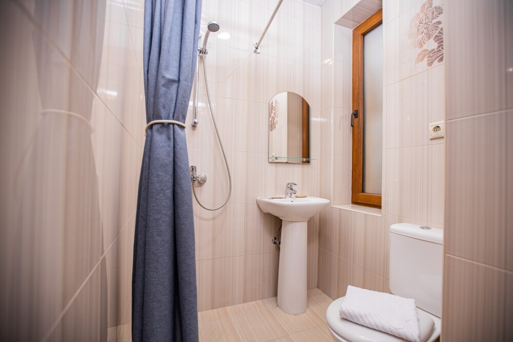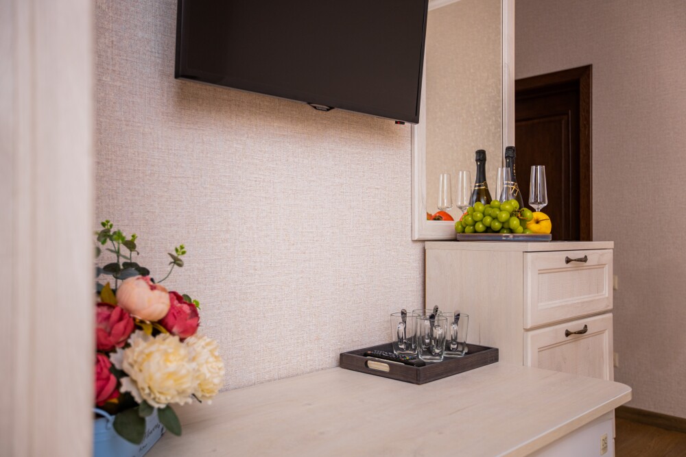Просторный стандартный номер (20 м2) идеально подходит для размещения четырёх гостей. Продуманная планировка включает: удобную двуспальную кровать для полноценного отдыха, односпальную кровать и мягкую софу — два дополнительных спальных места. В номере есть всё необходимое для комфорта: кондиционер поддерживает оптимальную температуру, телевизор создаёт настроение для вечернего досуга, а собственный балкон приглашает насладиться свежим воздухом. Фен и прочие удобства уже на месте — остаётся только заселяться и чувствовать себя как дома.
