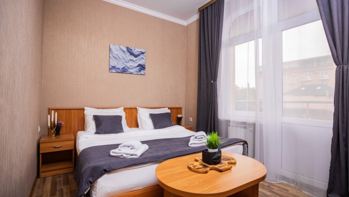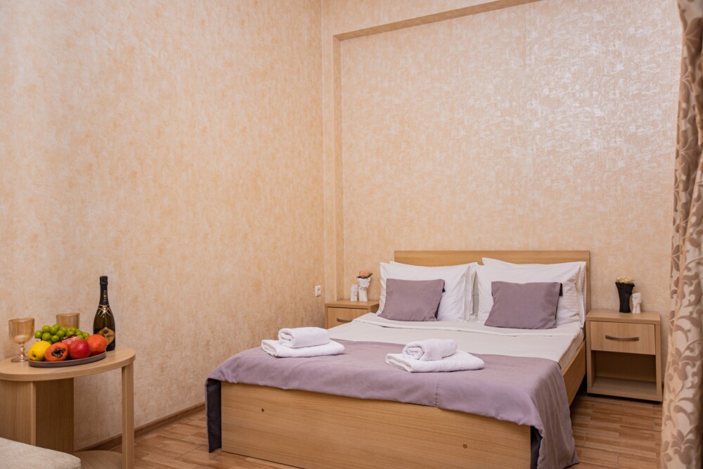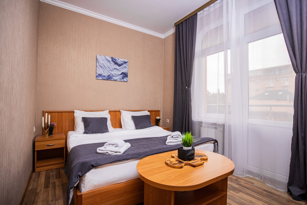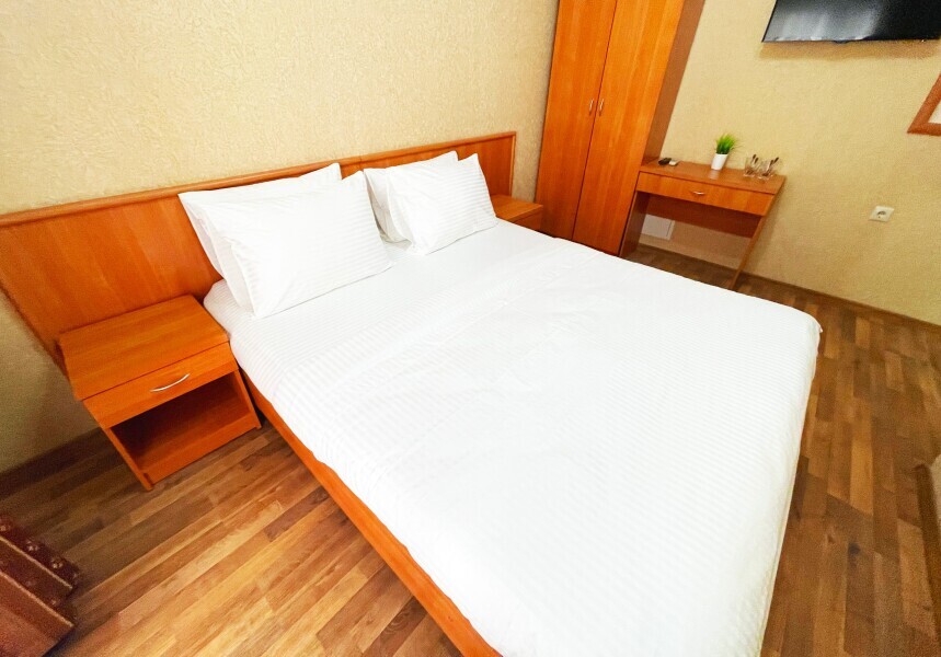 Уютный номер площадью 15м2 - идеальное пространство для отдыха. Вас ждёт удобная двуспальная кровать, где можно по‑настоящему расслабиться после насыщенного дня. В номере есть всё необходимое: телевизор для вечерних просмотров, кондиционер для комфортного микроклимата и фен для утренних сборов. Особая прелесть - собственный балкон, где приятно выпить кофе на рассвете или подышать вечерним воздухом.