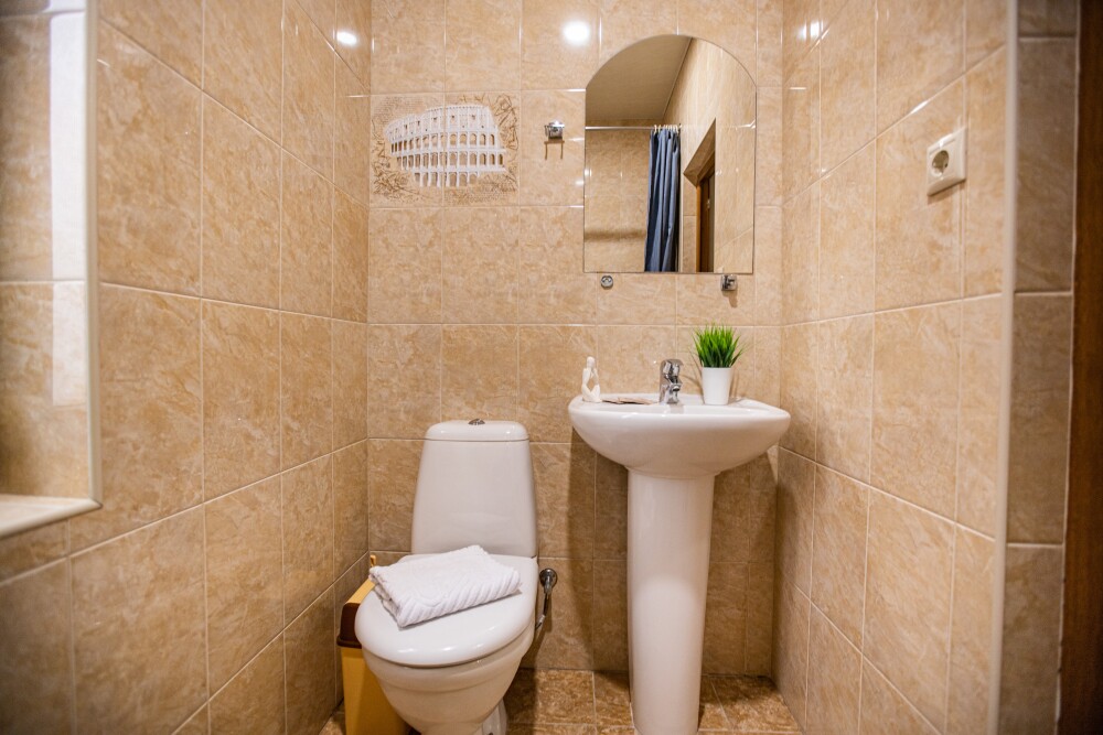 Уютный двухкомнатный номер идеально подходит для размещения компании до шести человек. В первой комнате расположена удобная двуспальная кровать с ортопедическим основанием, во второй — односпальная кровать и мягкий диван, а также две просторные софы, которые легко превращаются в дополнительные спальные места. Кондиционер поддерживает комфортную температуру в любое время года, телевизор создаёт атмосферу домашнего уюта, а балкон становится любимым местом для утренних чаепитий и вечерних бесед. Всё необходимое — от фена до мелочей — уже подготовлено для вашего отдыха.