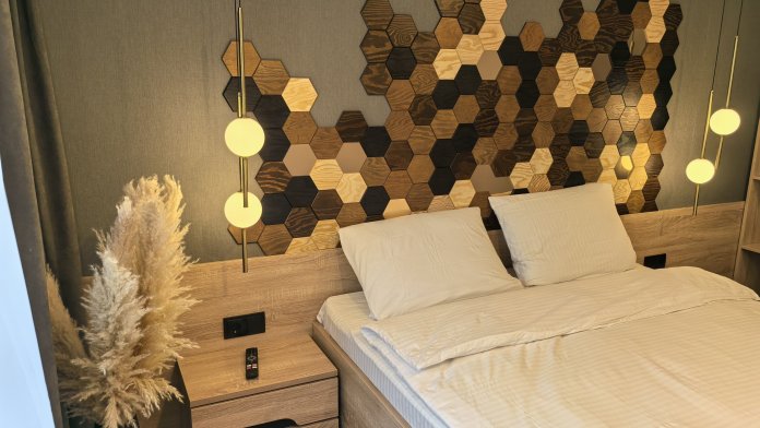 - Современный ремонт: Интерьер выполнен в современном стиле, оснащен всей необходимой мебелью и бытовой техникой.