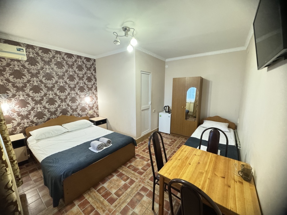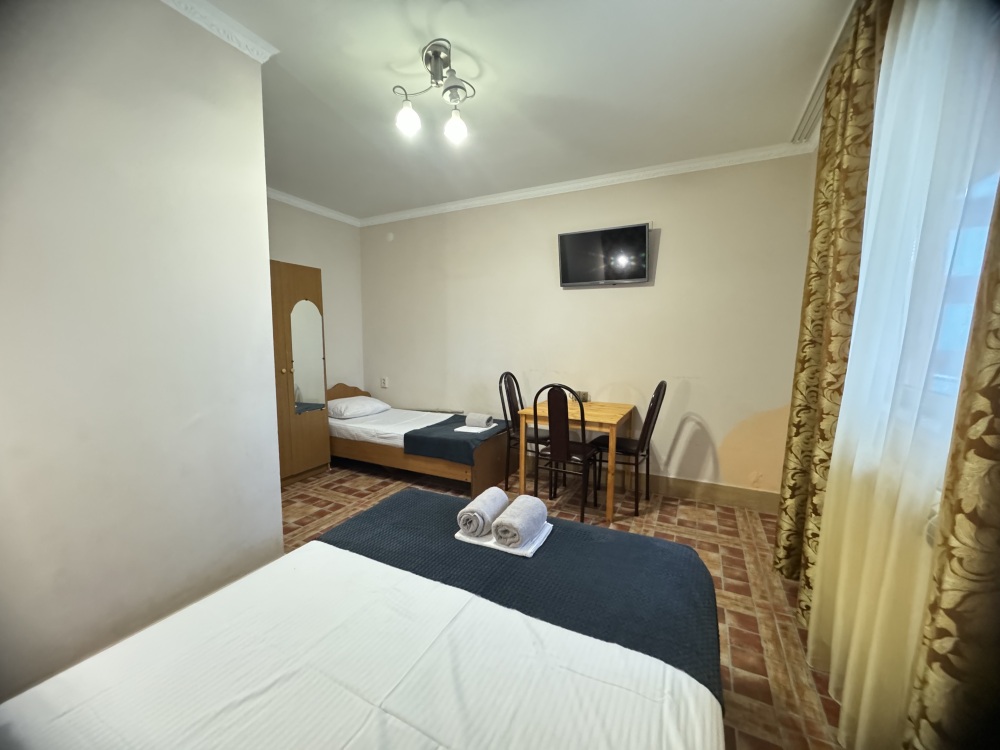 В каждом номере есть: ЖК-телевизор, холодильник, сплит-система, бесплатный Wi-fi и собственная ванная комната.