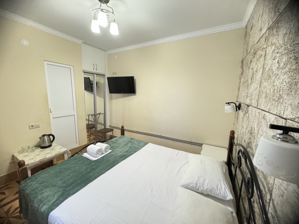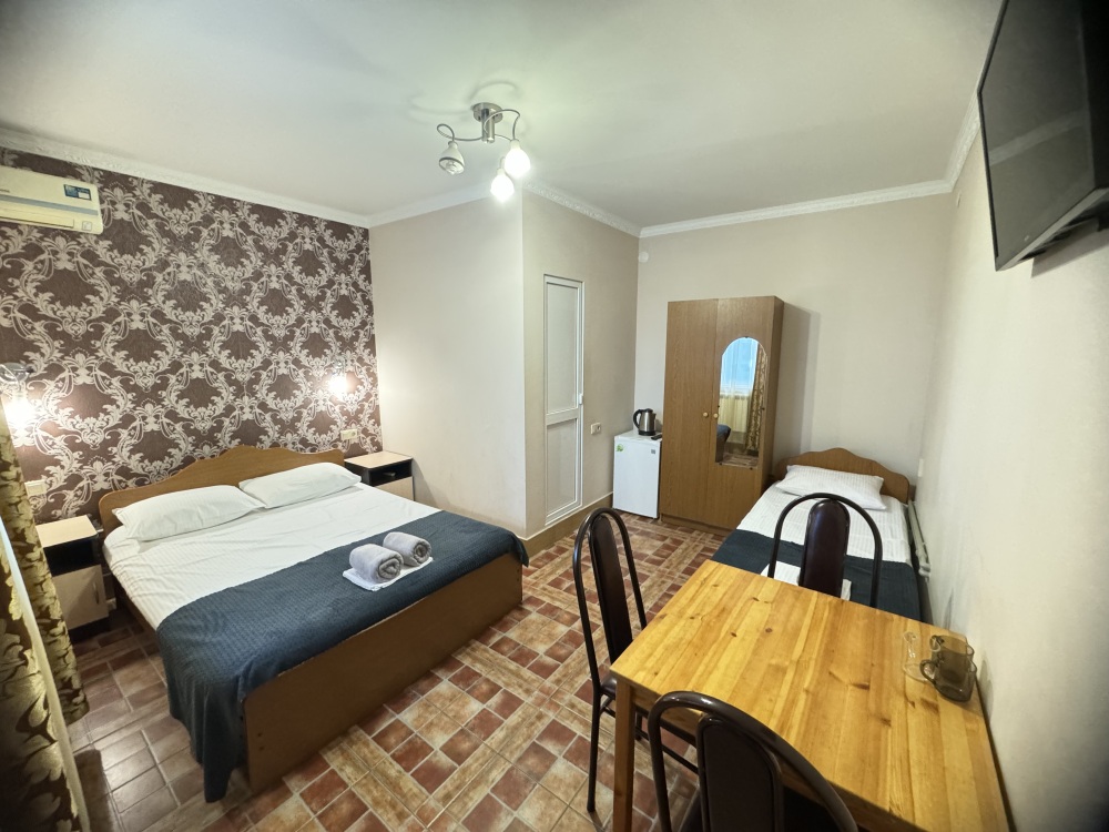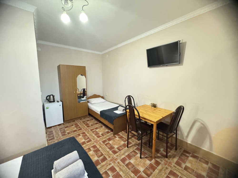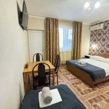 В номере есть все для комфортного проживания: кондиционер, телевизор, мини-холодильник, чайник, фен. Санузел в номере.