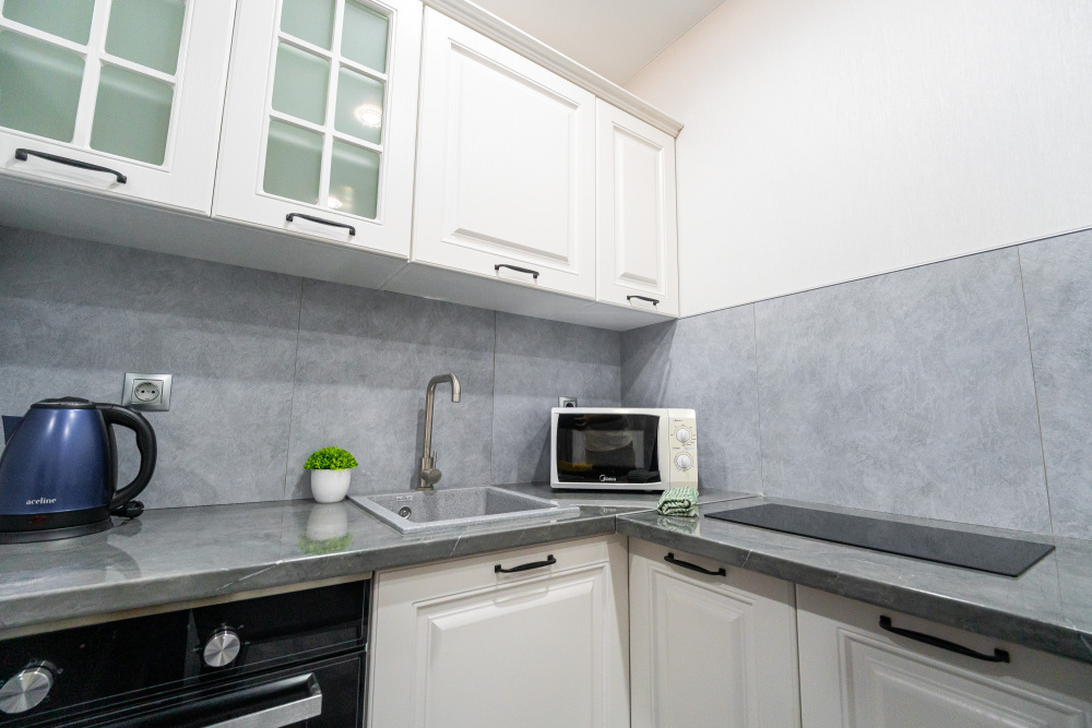- Кухня: вся необходимая техника (холодильник, плита, микроволновка, чайник, духовка) и посуда.