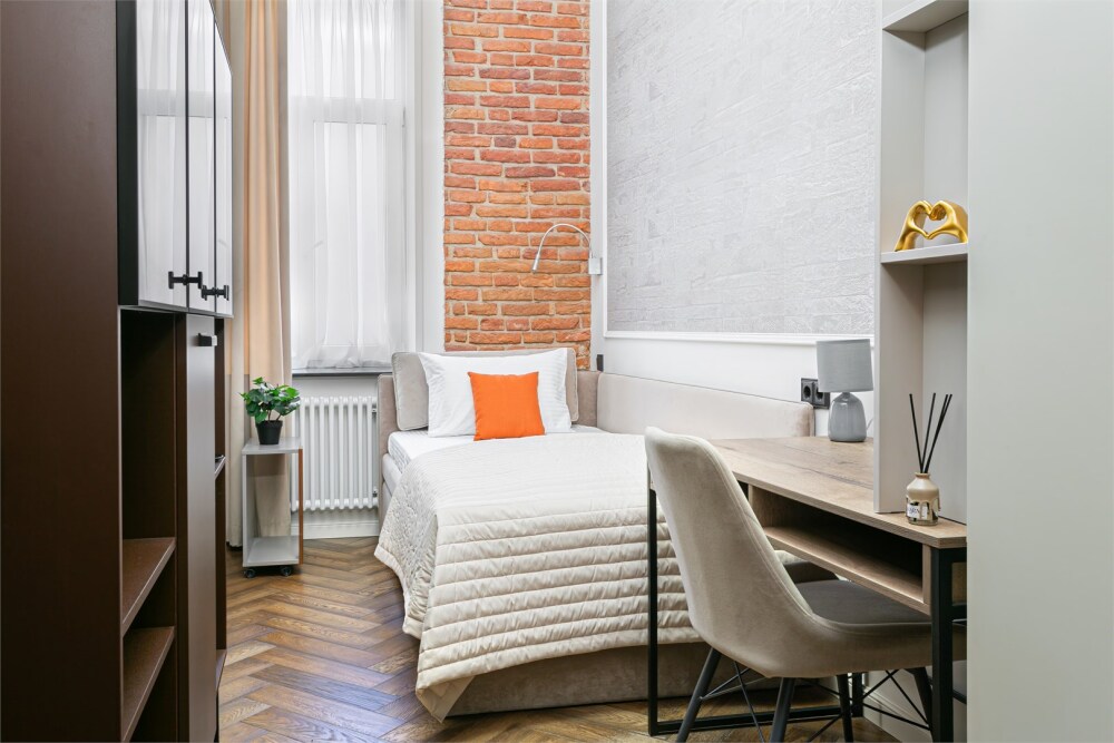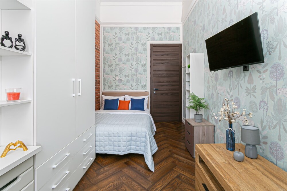 - Удобная двуспальная кровать 140 см, двуспальный диван-кровать и односпальная кровать 100 см в комнатах