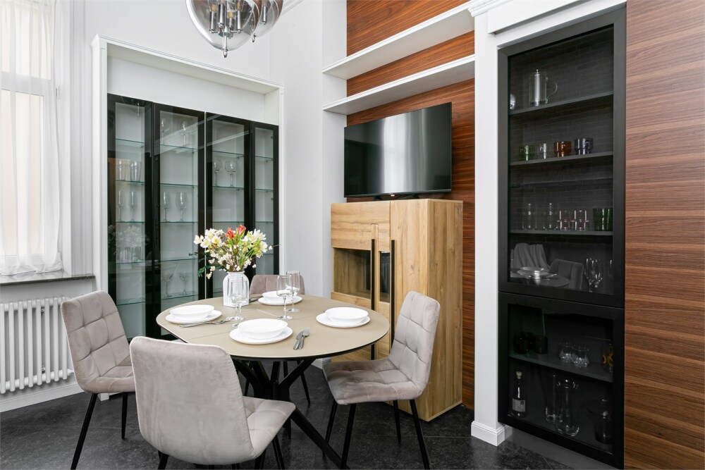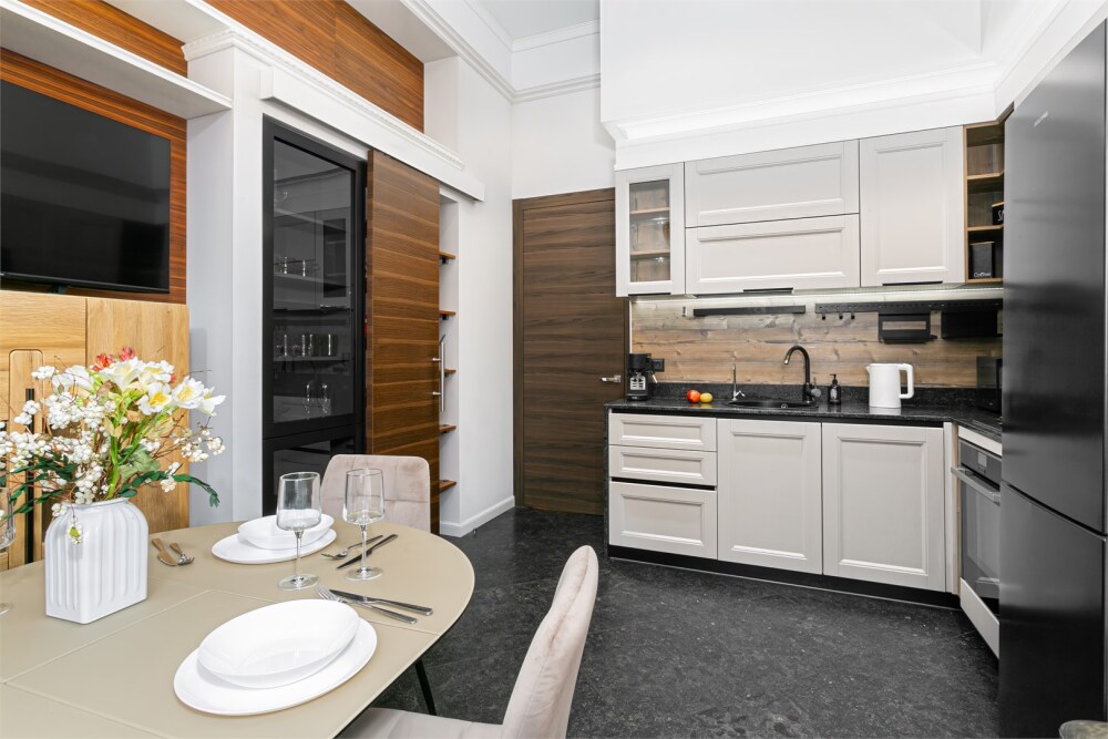 - Кухня: плита, посудомоечная машина, духовка, чайник, холодильник, кофемашина