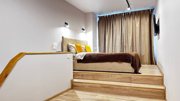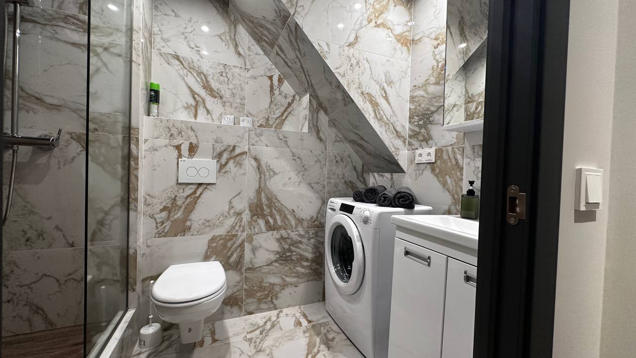 Преимущество перед идентичными апартаментами: Высота потолков на 2 этаже - 270см, полностью изолированная большая спальня, что немаловажно при размещении в двухуровневых апартаментах. Исходя из этого, гости не будут мешать друг другу при отдыхе или просмотре телевизора, разговорах.