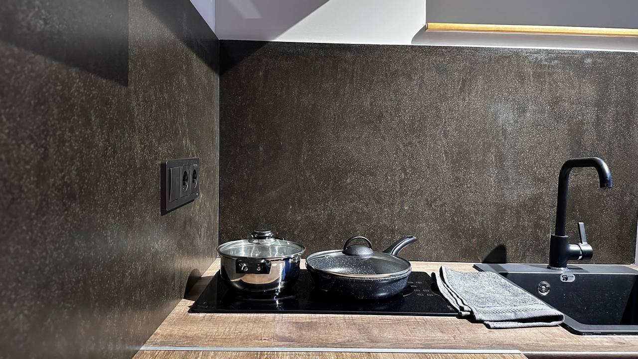 К Вашим удобствам: Кровать с матрасом премиум-класса, диван-кровать, что позволяет разместить до 4 гостей, 2 телевизора, интернет, кондиционер, стиральная машина, электрическая плита, микроволновка, посуда для приготовления пищи.