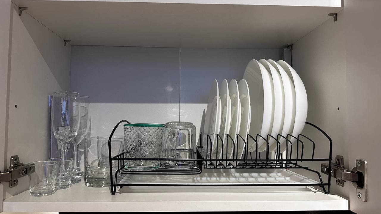 В квартире есть все необходимое для проживания: всегда чистые постельное белье и полотенца, средства гигиены, туалетные принадлежности, одноразовые тапочки, фен, кухонная посуда для приготовления и разогрева пищи. При необходимости, личные вещи можно постирать и погладить, в наличии стиральная машина, гладильная доска, сушилка и утюг.
