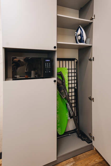 Телевизор, фен, утюг и гладильная доска, сушилка.