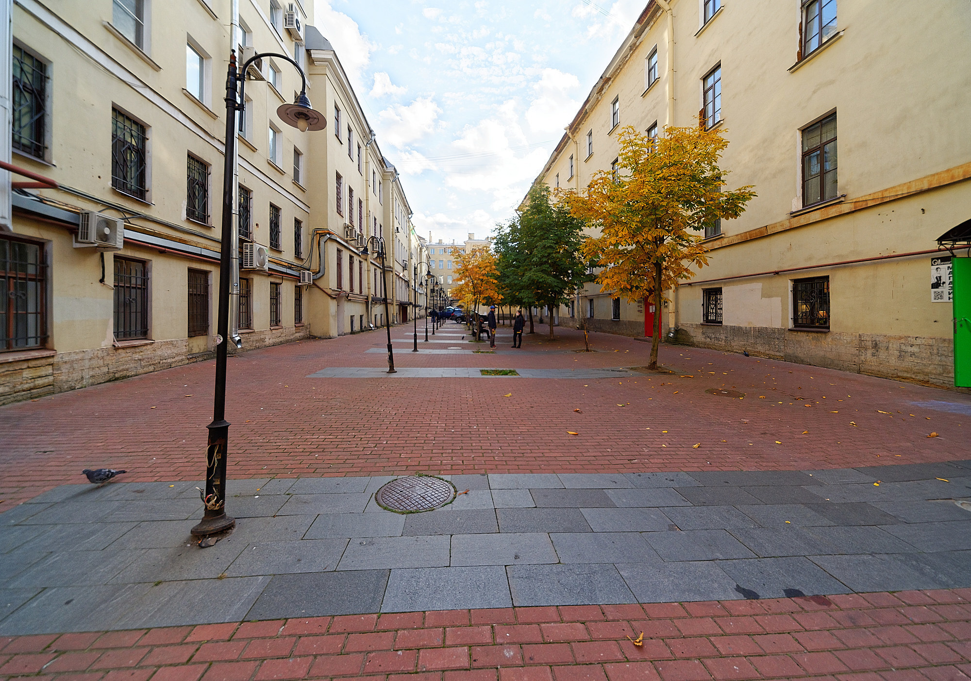 Двор выходит на самую оживленную часть Невского проспекта, но все окна обращены в тихий двор, это дарит спокойствие и тишину — редкое преимущество для туристического центра.