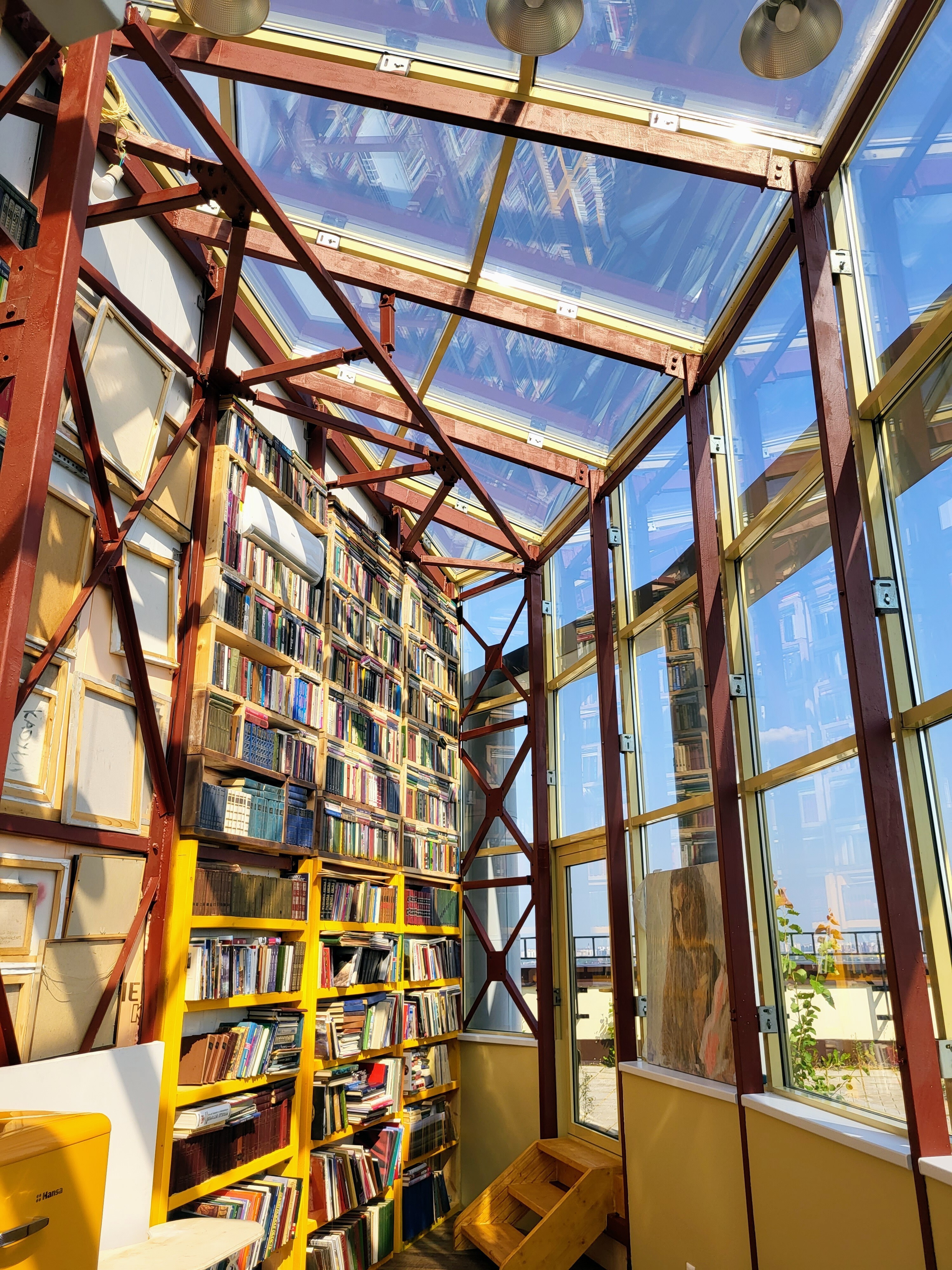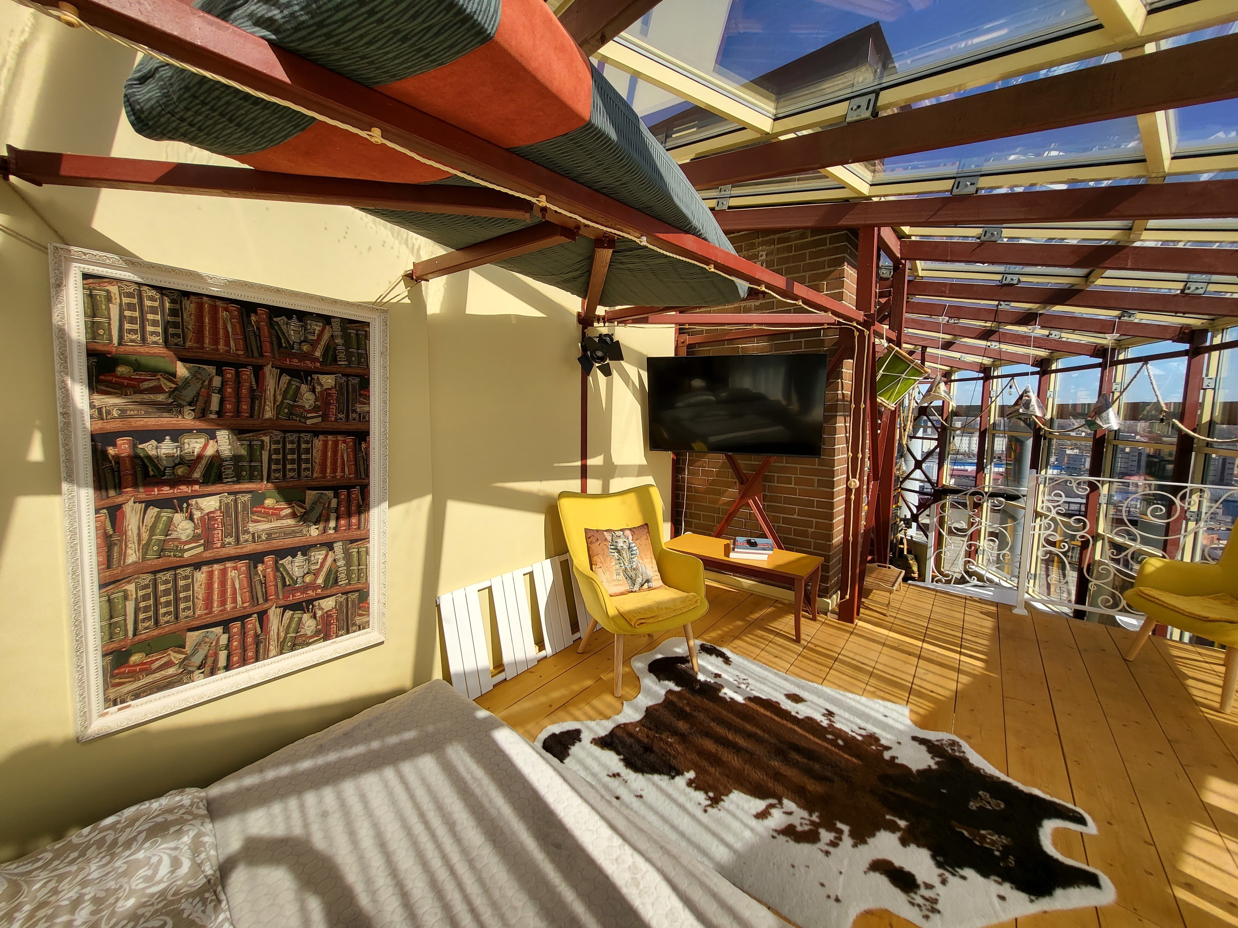 - Уютный дизайнерский мезонин с библиотекой. Все книги доступны для чтения, включая на свежем воздухе, на террасе;