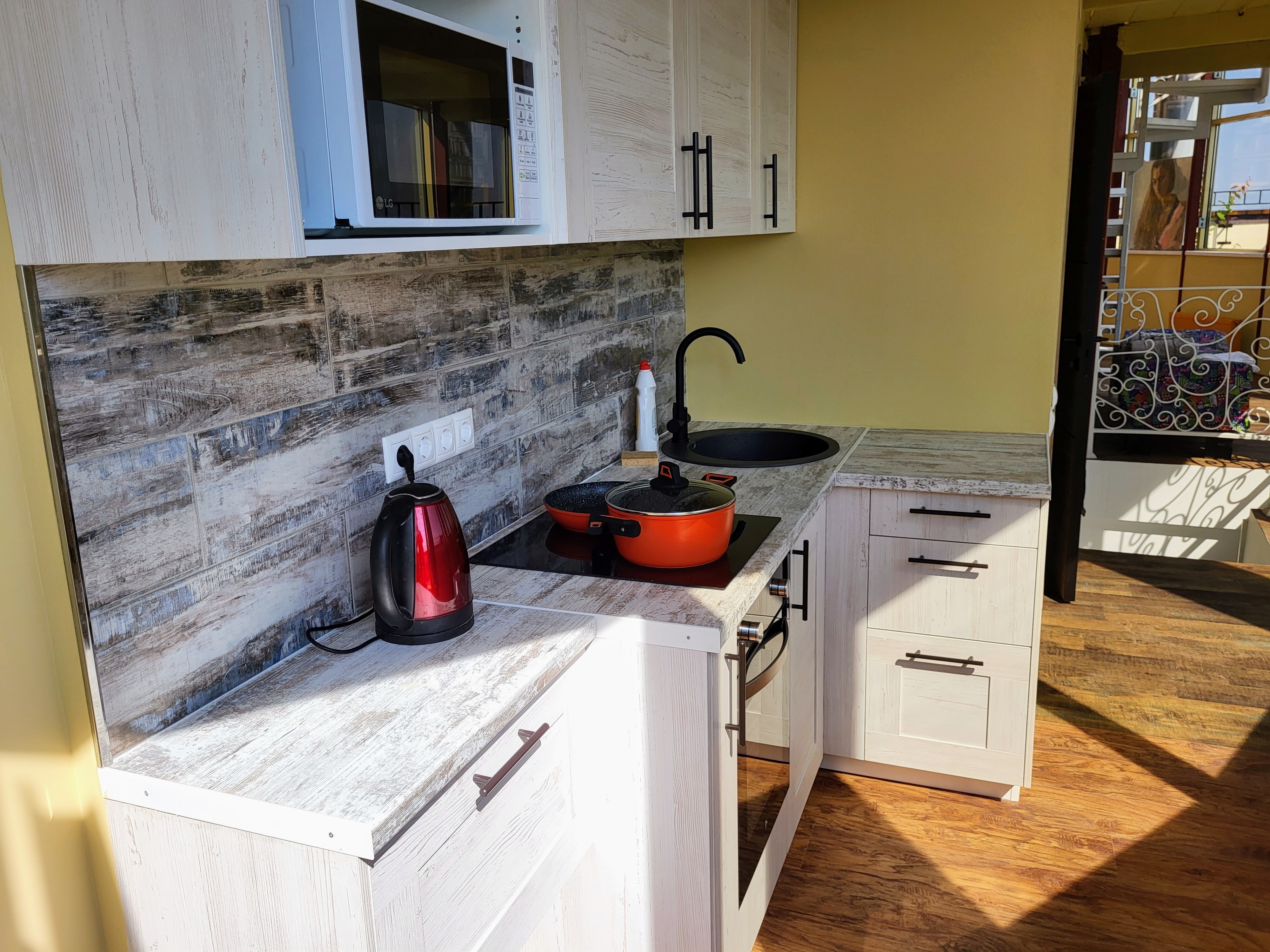 - Полностью оборудованная кухня (включая фильтры для воды, посудомоечную машину и духовой шкаф);