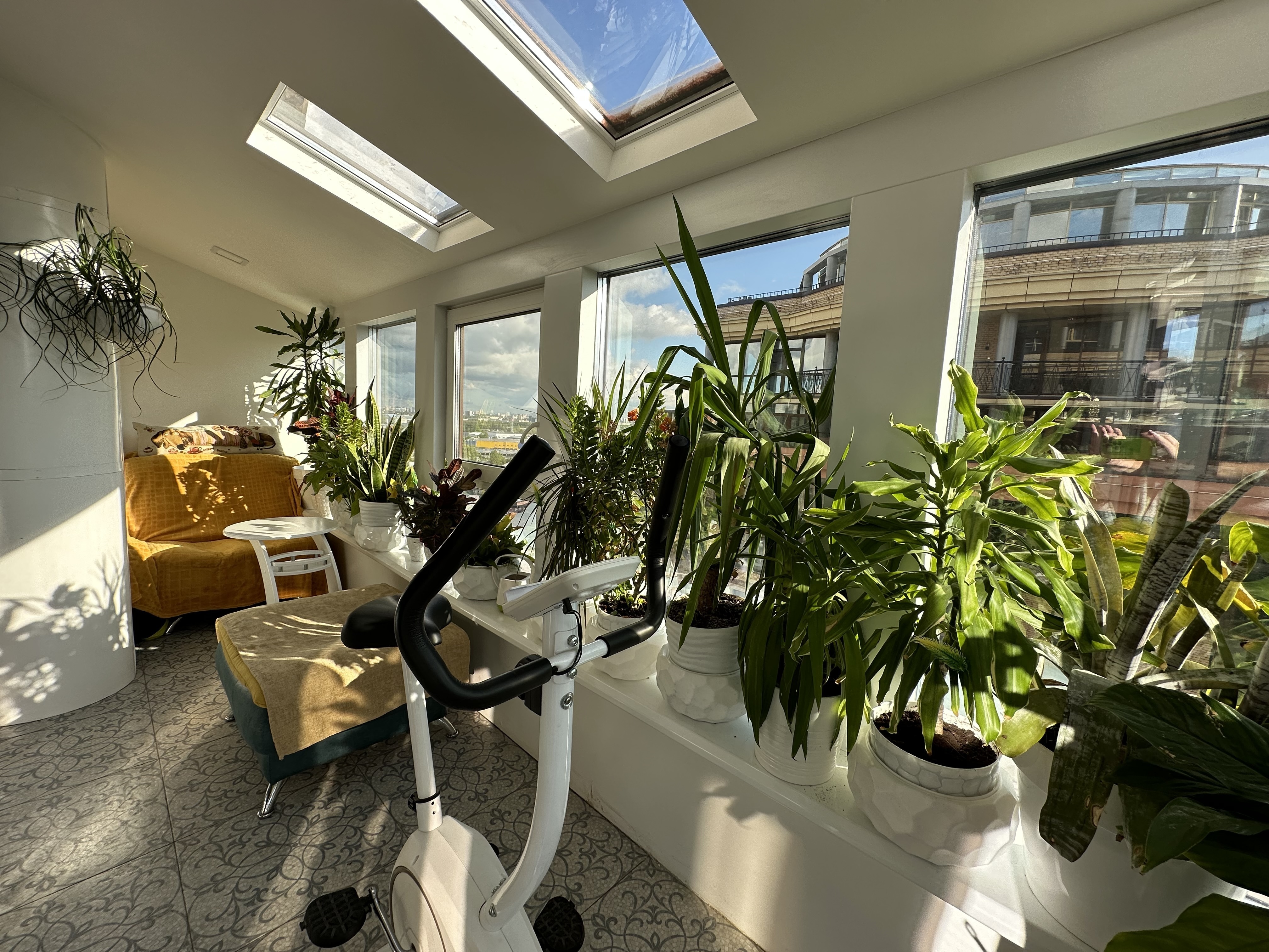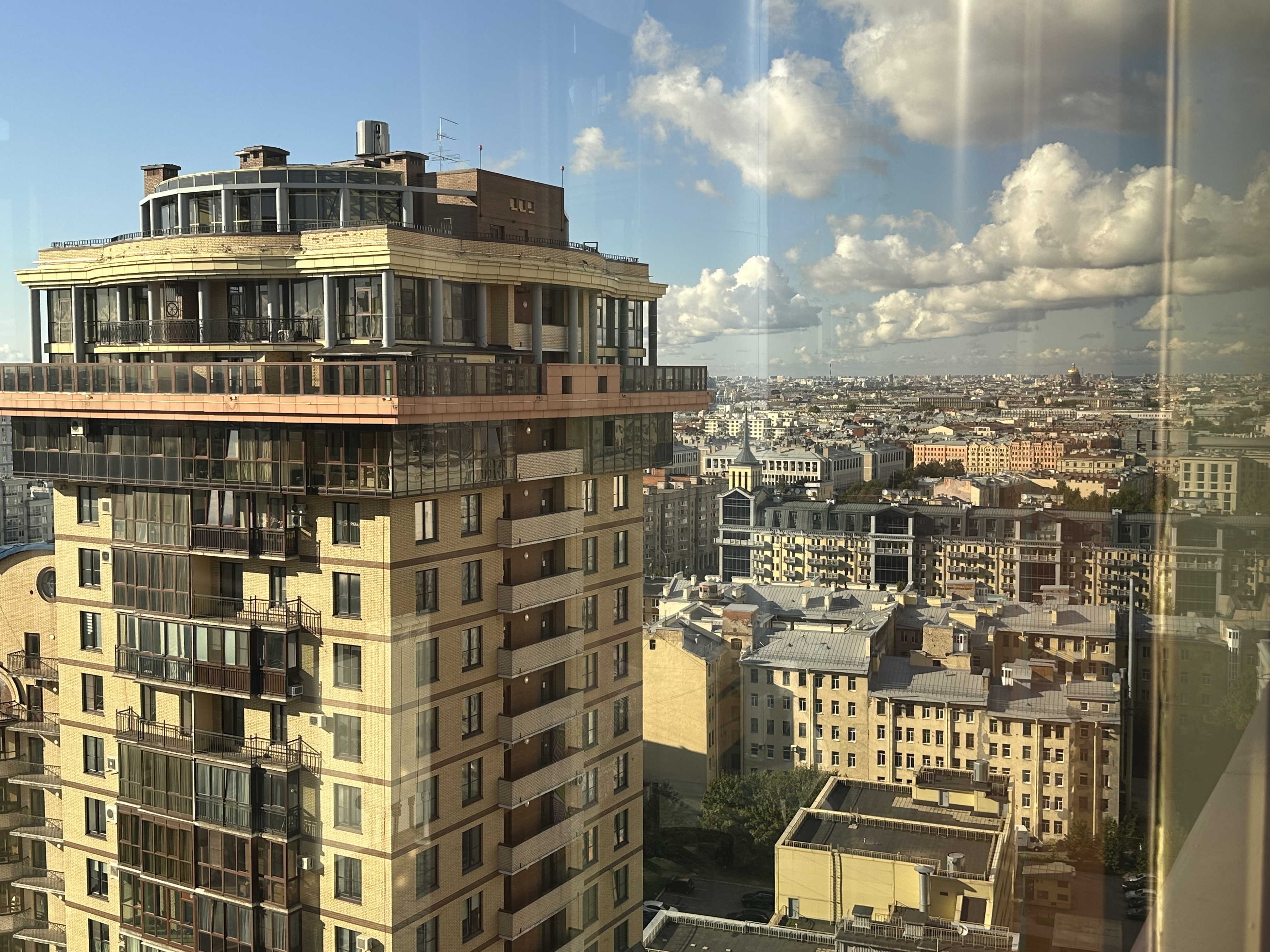 Продолжая маршрут, Вы входите в оранжерею с фитнес-зоной место для перезагрузки. Отсюда снова можно вернуться в гостиную и пройти в уединённую вторую спальню с панорамой Петербурга. Завершение маршрута - захватывающие виды на Троицкий собор, Исаакиевский, Адмиралтейство и Финский залив. Два санузла.