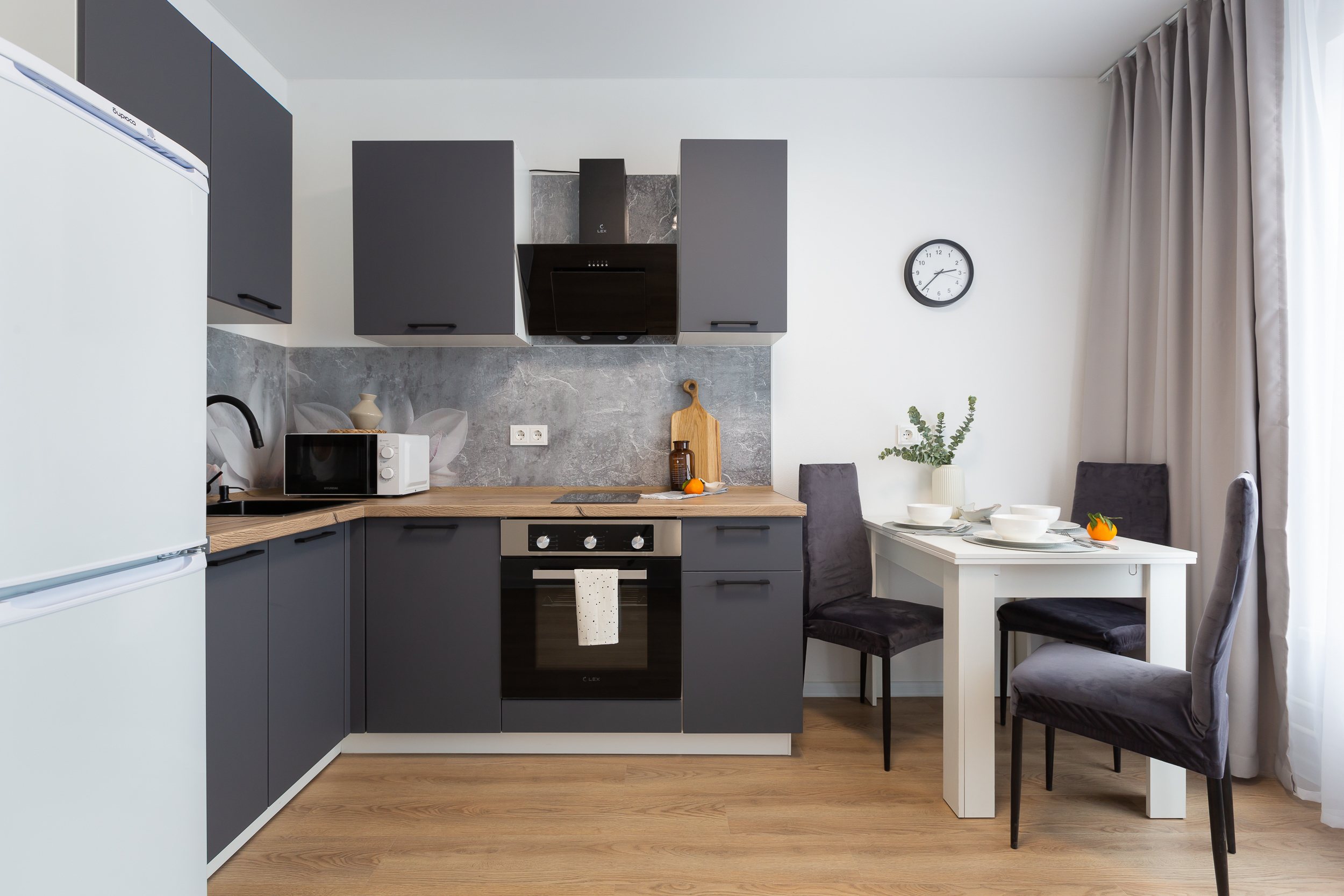 - плита, микроволновка, чайник, холодильник;