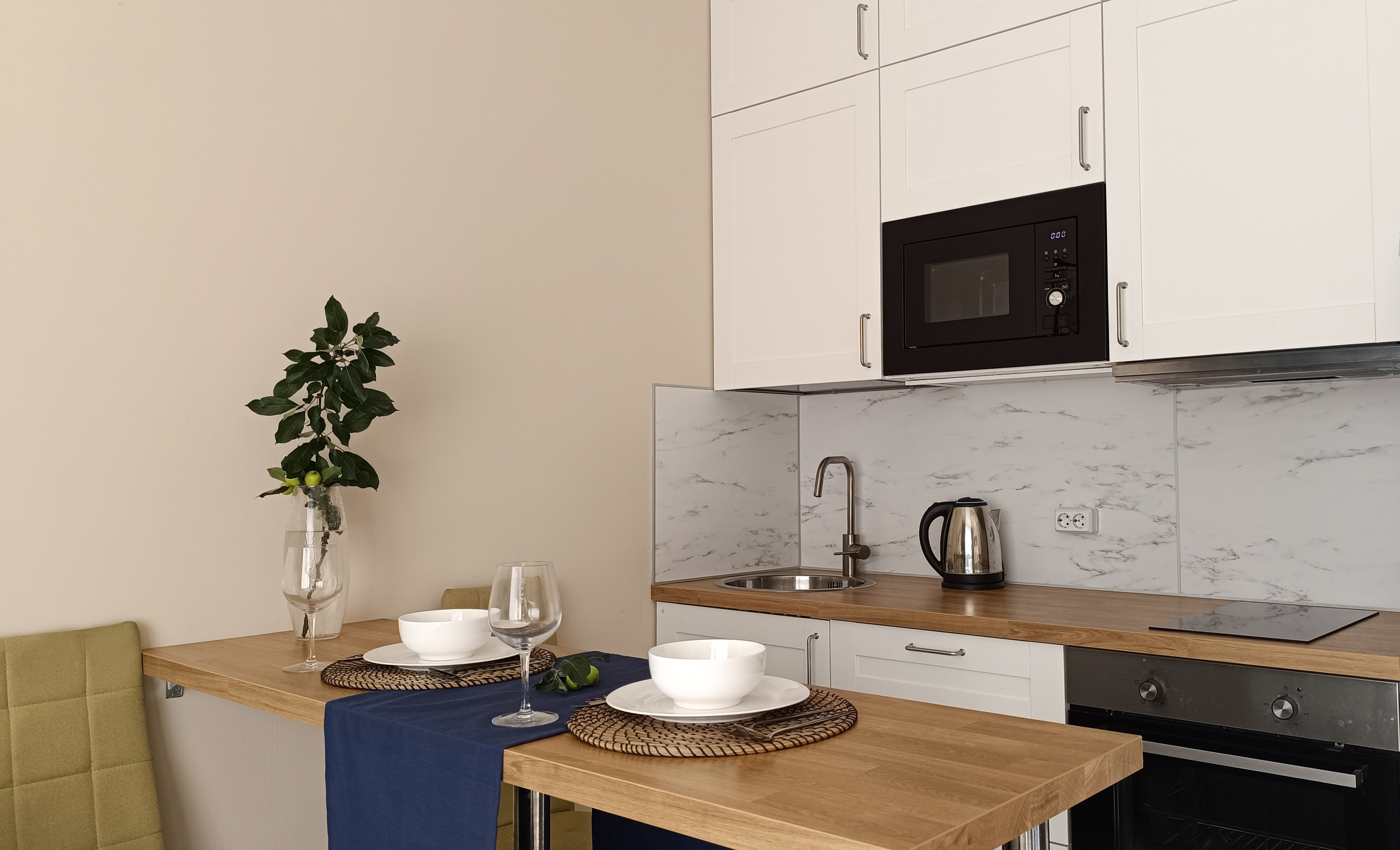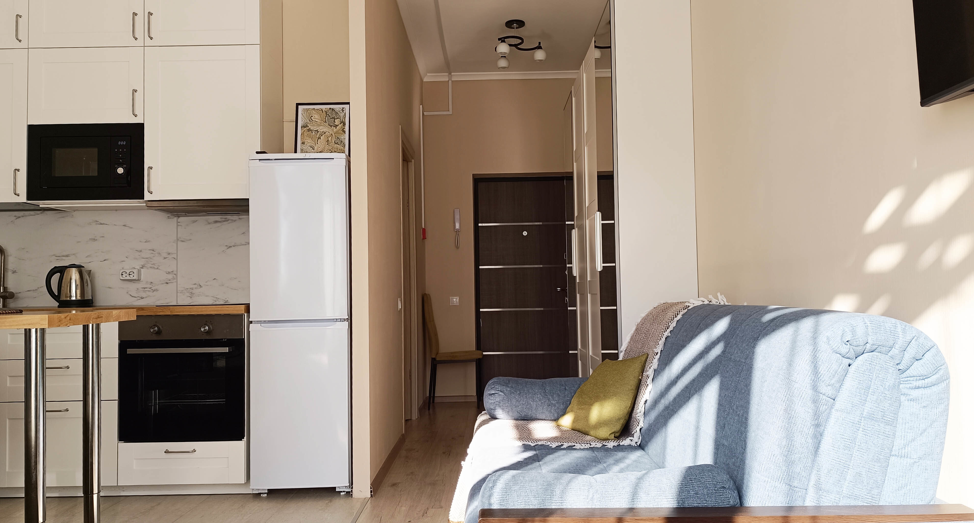 - плита, микроволновка, духовка, чайник, холодильник;