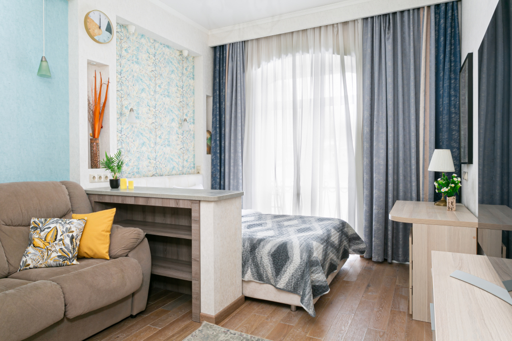 - Удобная двуспальная кровать 140 см и раскладной диван