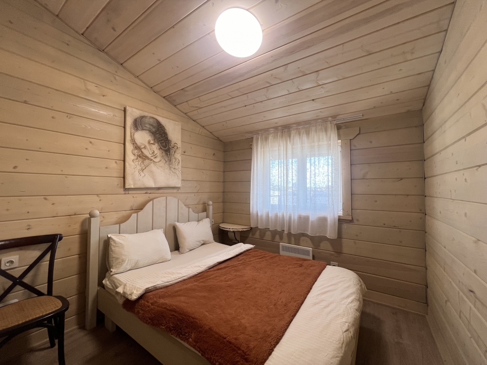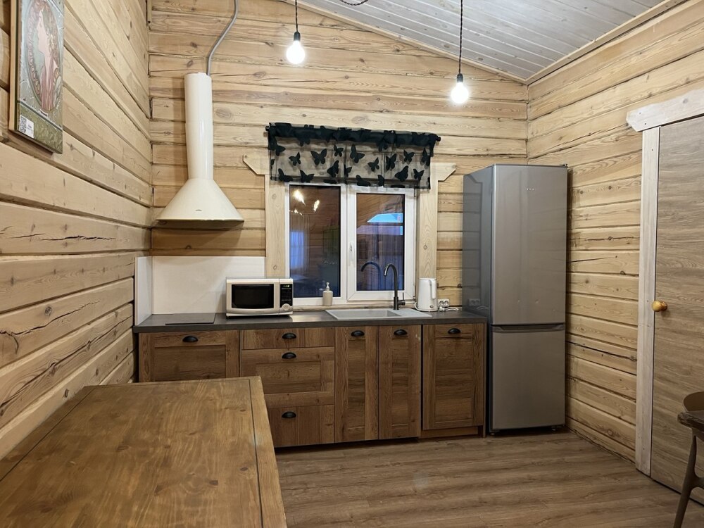 Деревянный, уютный и светлый дом для отдыха на природе, дом расположен на участке 8 соток, в нем есть всё необходимое для комфортного пребывания гостей. Дом полностью огорожен забором имеет свою парковку на несколько машин. В доме 3 отдельные спальни (10 спальных мест), большая кухня столовая на 16 посадочных мест. Имеется вся необходимая посуда, чайник, микроволновая печь, индукционная плита, холодильник, телевизор, обеденные столы со стульями, постельное белье, полотенца, чай, мыло, шампунь, тапочки, туалетные принадлежности.