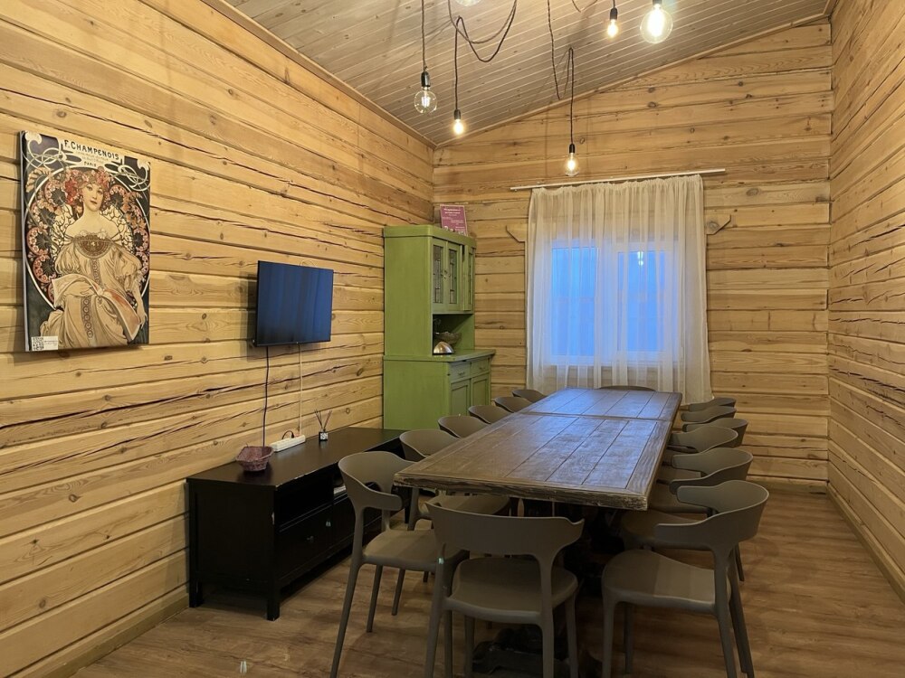 Современный, светлый и просторный дом для отдыха в черте Екатеринбурга. Дом из натурального дерева, расположен на участке 10 соток, в нем есть всё необходимое для комфортного пребывания гостей. Дом полностью огорожен забором имеет свою парковку на несколько машин. В доме большой банкетный зал до 50 человек вместимостью. 5 отдельных спален ( спальных мест до 16). Имеется вся необходимая посуда в большом количестве для мероприятий.