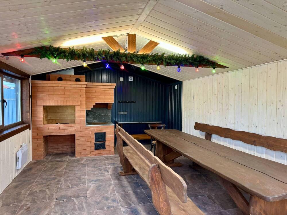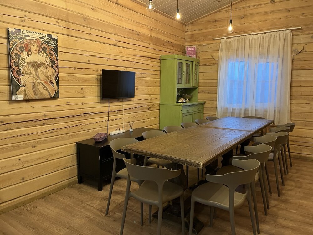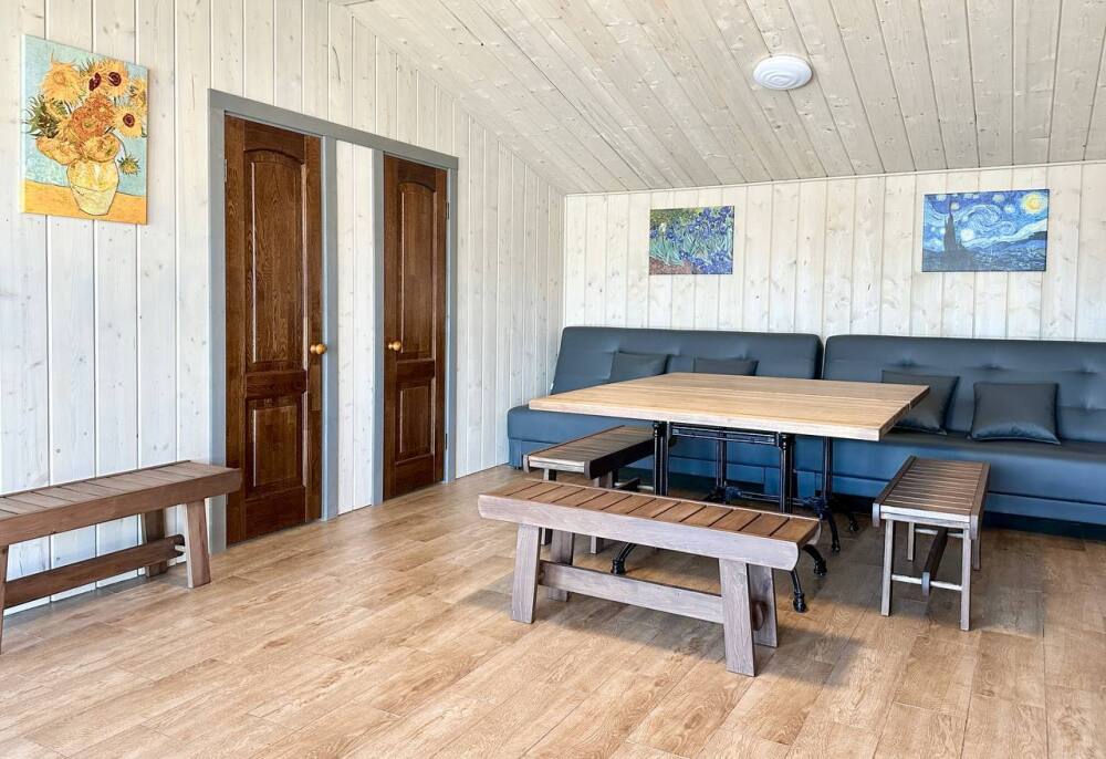 Деревянный, просторный дом-баня «Пар-Хаус 2», в стиле Барнхаус для комфортного отдыха на природе, созданный с любовью к деталям. Сауна с современной электрокаменкой, в которой можно париться вениками и поддавать на камни. В доме-бане большая кухня-гостиная, обеденный стол со скамьями (14 посадочных мест), 2 раскладных дивана (4 спальных места), кухонный гарнитур со всем необходимым (посуда, чайник, микроволновая печь, индукционная плита, холодильник), так же телевизор, постельное белье, полотенца, чай, мыло, шампунь, тапочки.