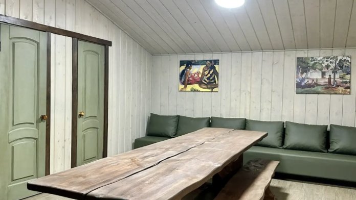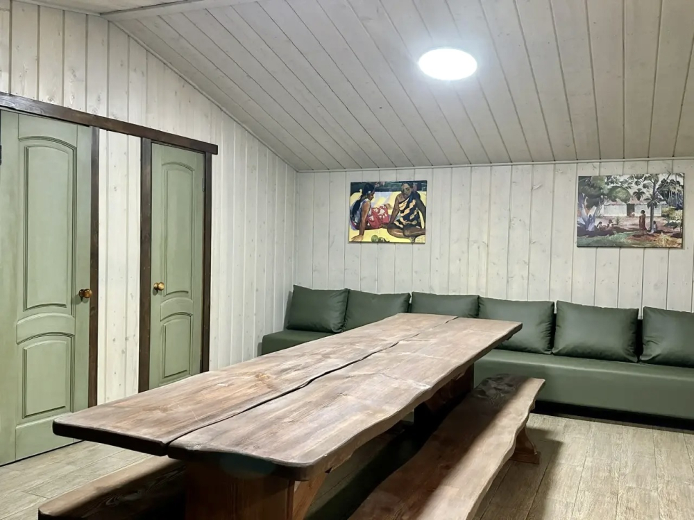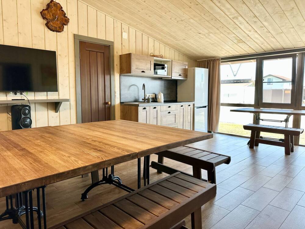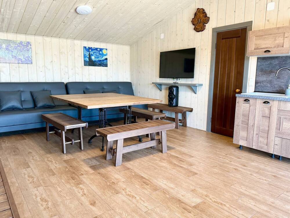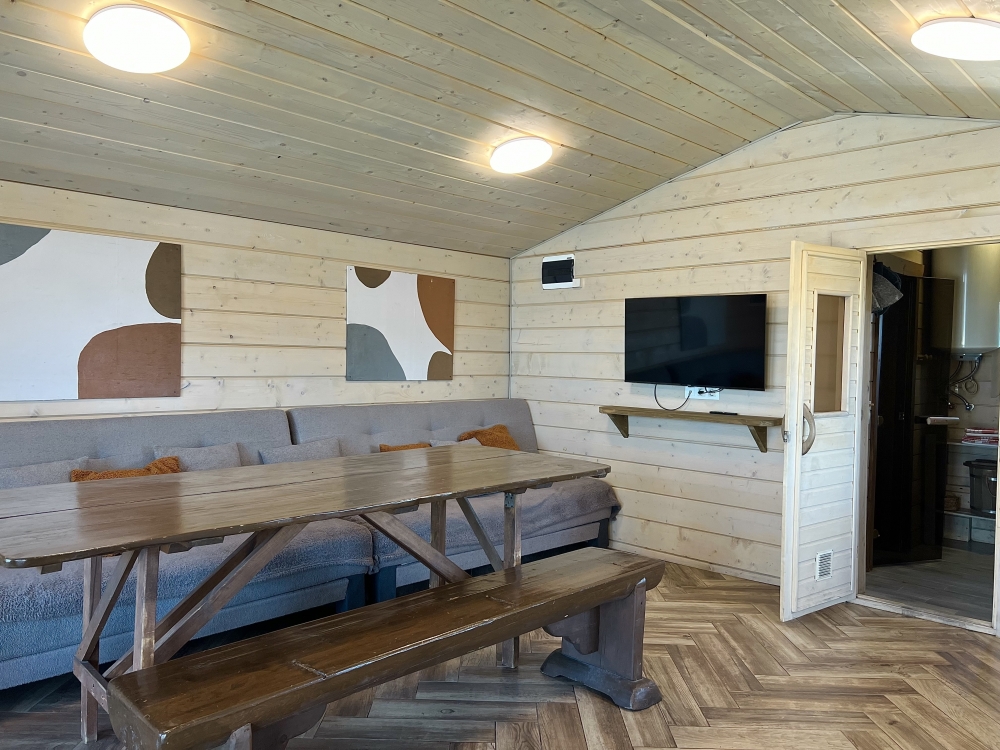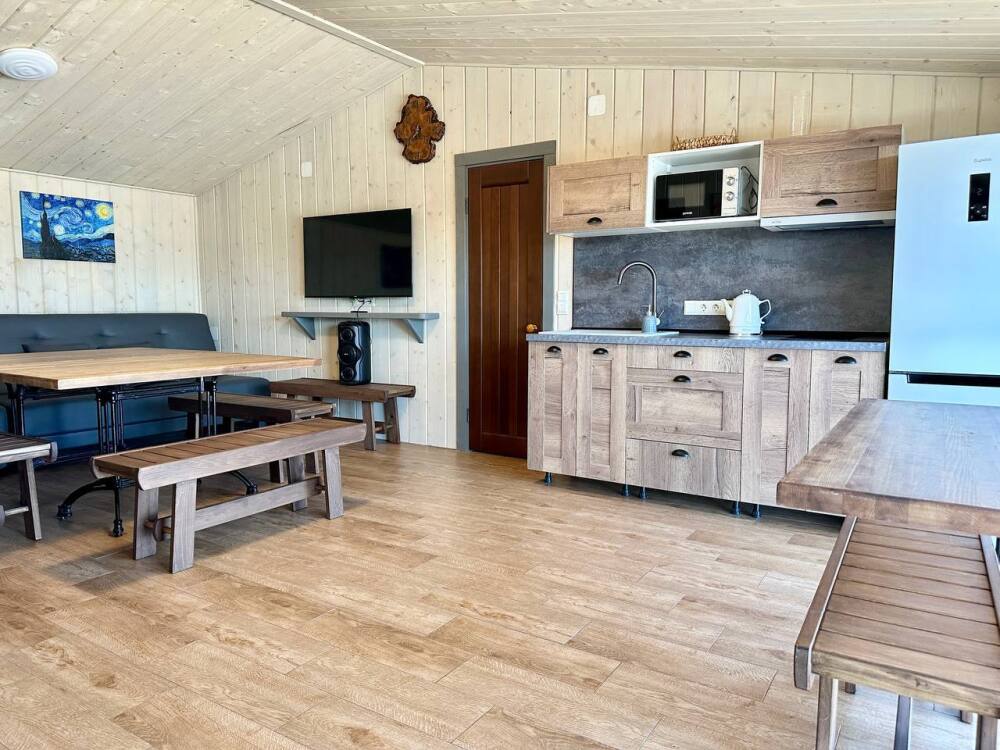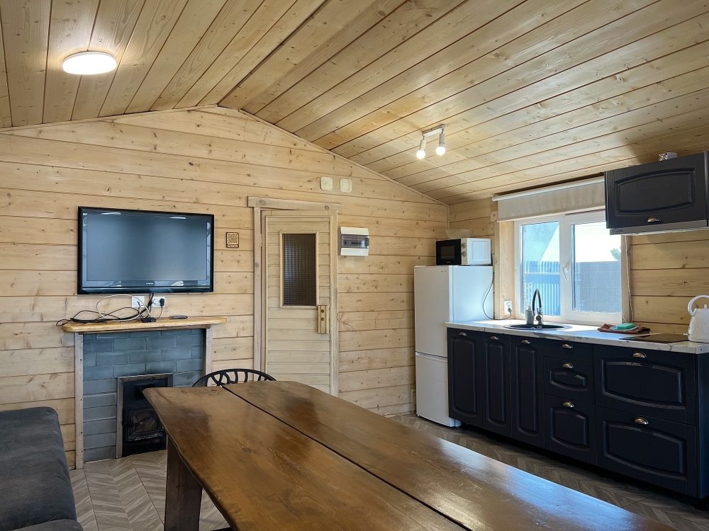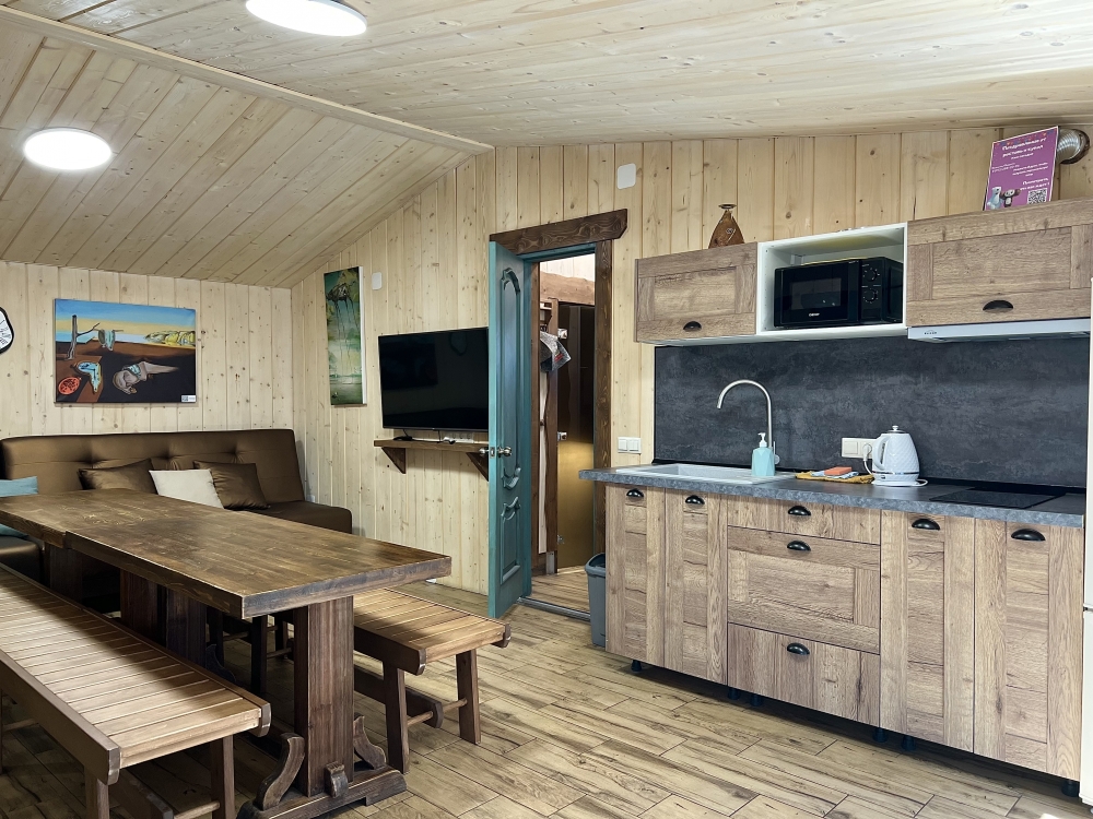 Деревянный, просторный дом-баня «Пар-Хаус 1» на дровах, в стиле Барнхаус для комфортного отдыха на природе, созданный с любовью к деталям. В доме- бане большая кухня-гостиная, обеденный стол со скамьями (14 посадочных мест), 2 раскладных дивана (4 спальных места), кухонный гарнитур со всем необходимым (посуда, чайник, микроволновая печь, индукционная плита, холодильник), телевизор, постельное белье, полотенца, чай, мыло, шампунь, тапочки, банные и туалетные принадлежности. В доме парная с душевой и сан. узлом.