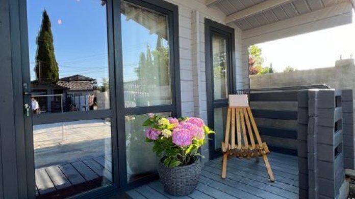 Коттедж 4-местный с террасой площадью 25 м2 с видом во двор.