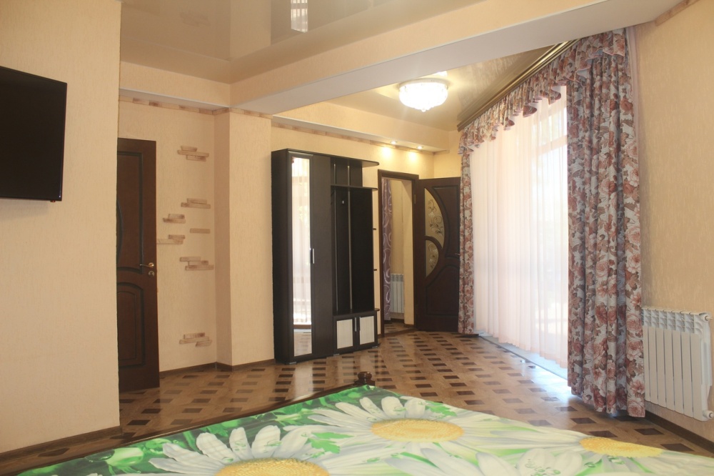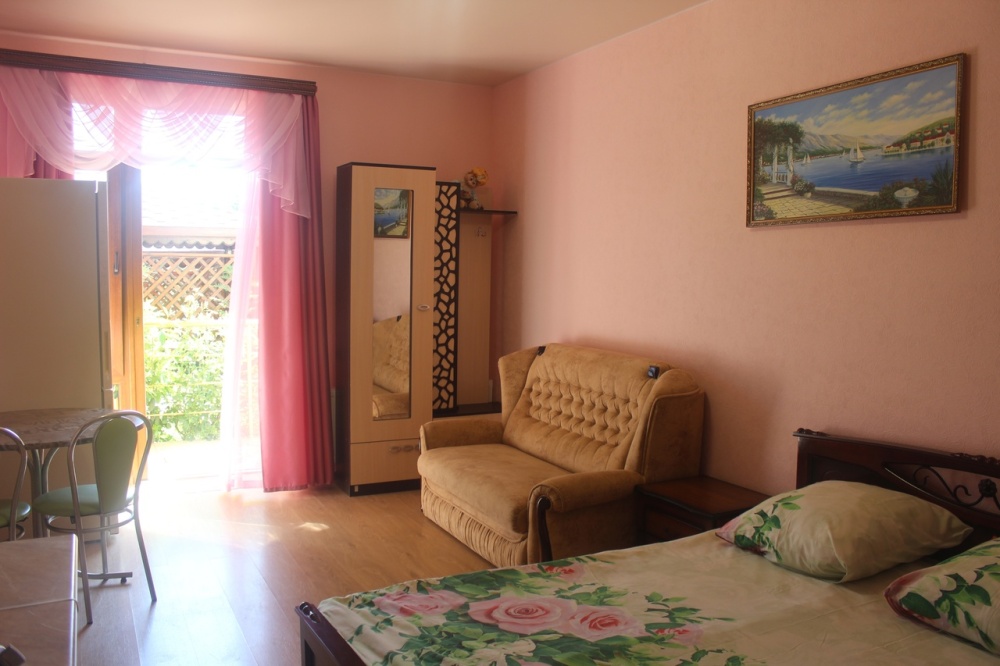 1 двуспальная кровать, 2 дивана-кровати, 2 кресла-кровати, детская кроватка (по запросу)