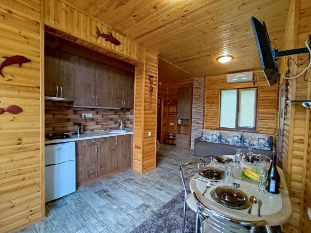 Каждый номер оборудован всем необходимым для комфортного отдыха: современная мебель, кондиционер, теплый пол, плазменный телевизор, кабельное телевидение, утюг, гладильная доска, газовая печь, электрочайник, холодильник, посуда, стиральная машина, сан узел, душевая, вода горячая и холодная постоянно, Wi-Fi.